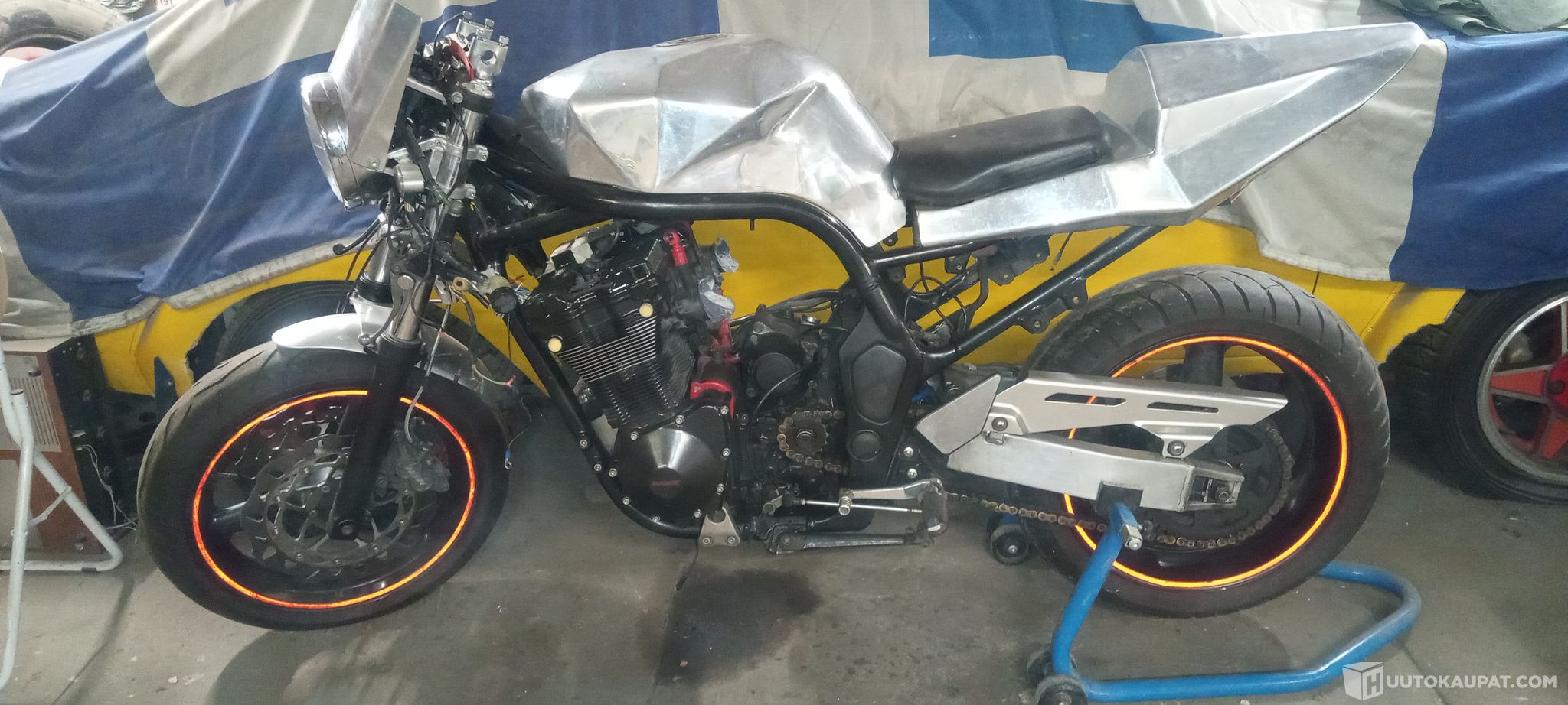 Suzuki Bandit 1200 1997, rakennettu 2000-2002 ammattilaisen toimesta ja 2015 alettu ehjää ja toimivaa pyörää rakentamaan edelleen amatöörin toimesta, jolta pelastettu 2022.