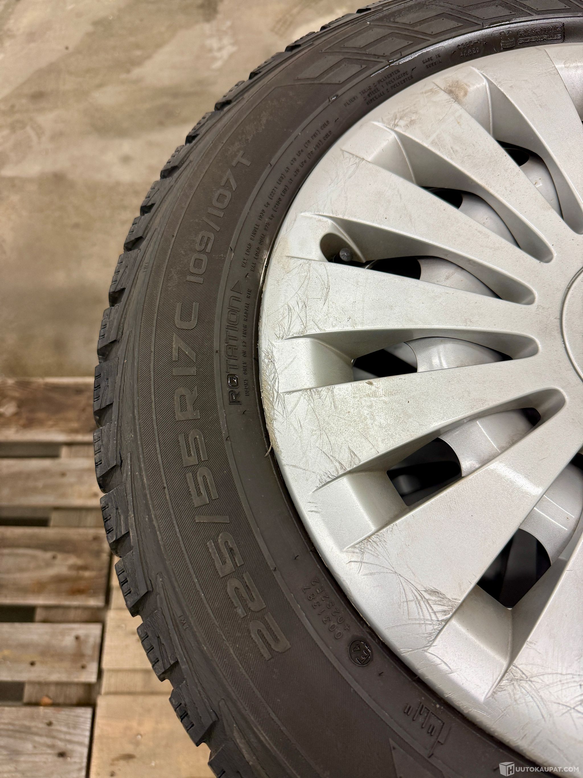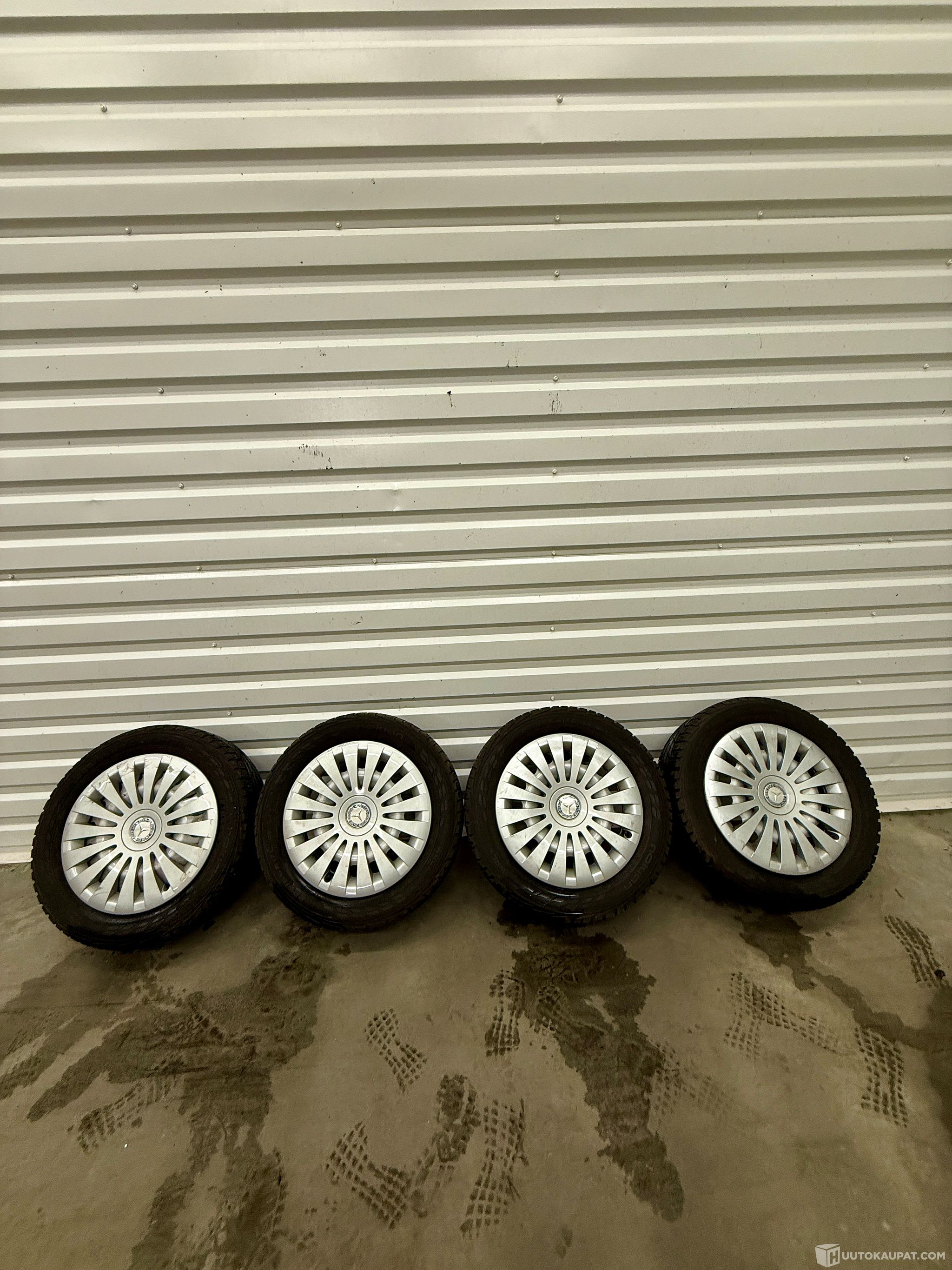 Nokian kitkarenkaat 225/55 R17 C vanteineen, MB Viton pölykapseleilla, Oulu
