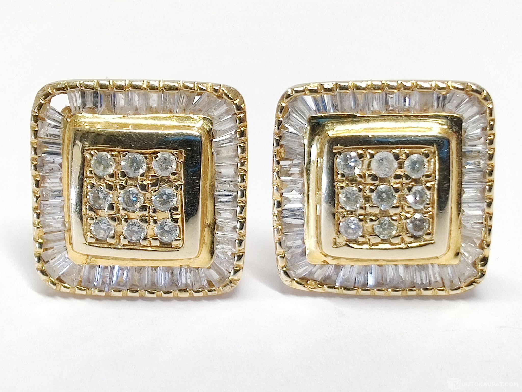Toisesta korvakorusta puuttuu kuvien mukaisesti yksi timantti.