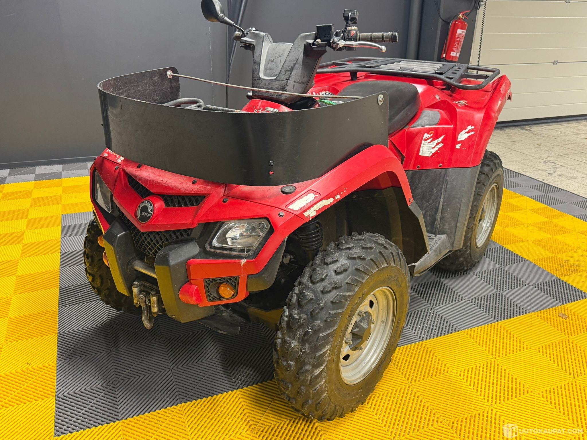 Tästäpä pihatöihin näppärä Can-am! Mönkijässä on mm kilpiteline, joten ei ole varmuutta saisiko vaikka liikenteeseenkin! Se jääköön huutajan selvitettäväksi.