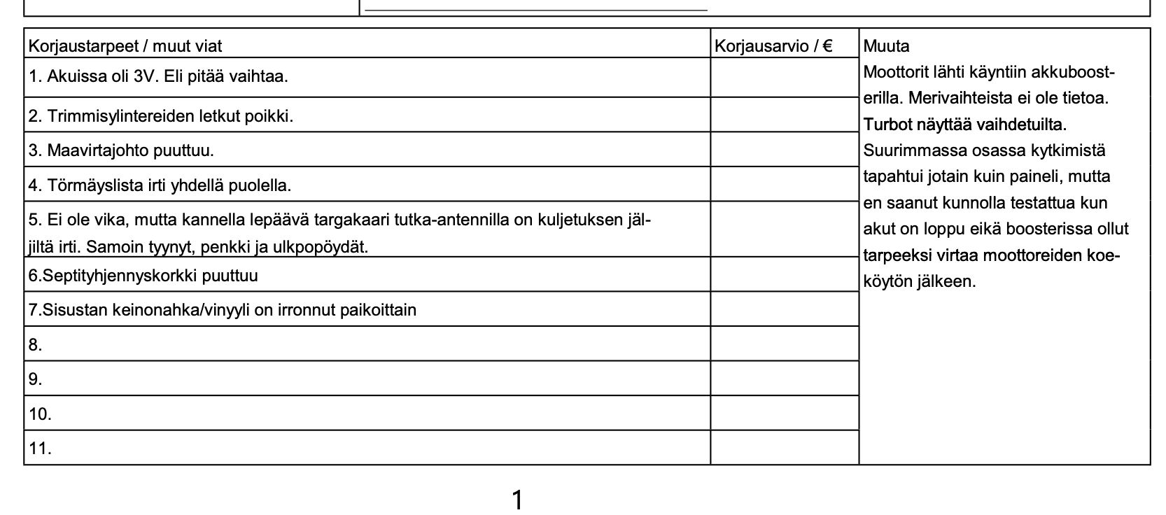 Koeajolla teimme seuraavat havainnot / Faults in the car :