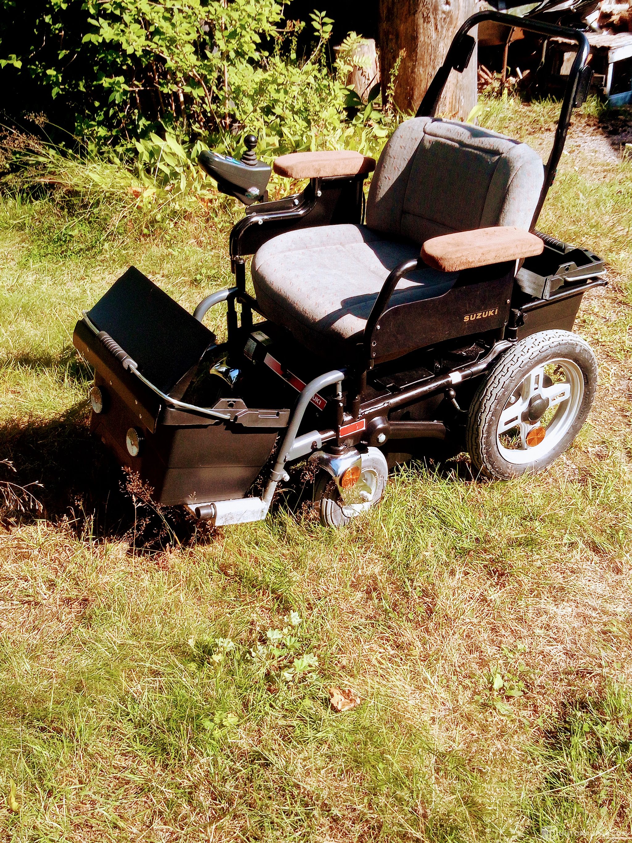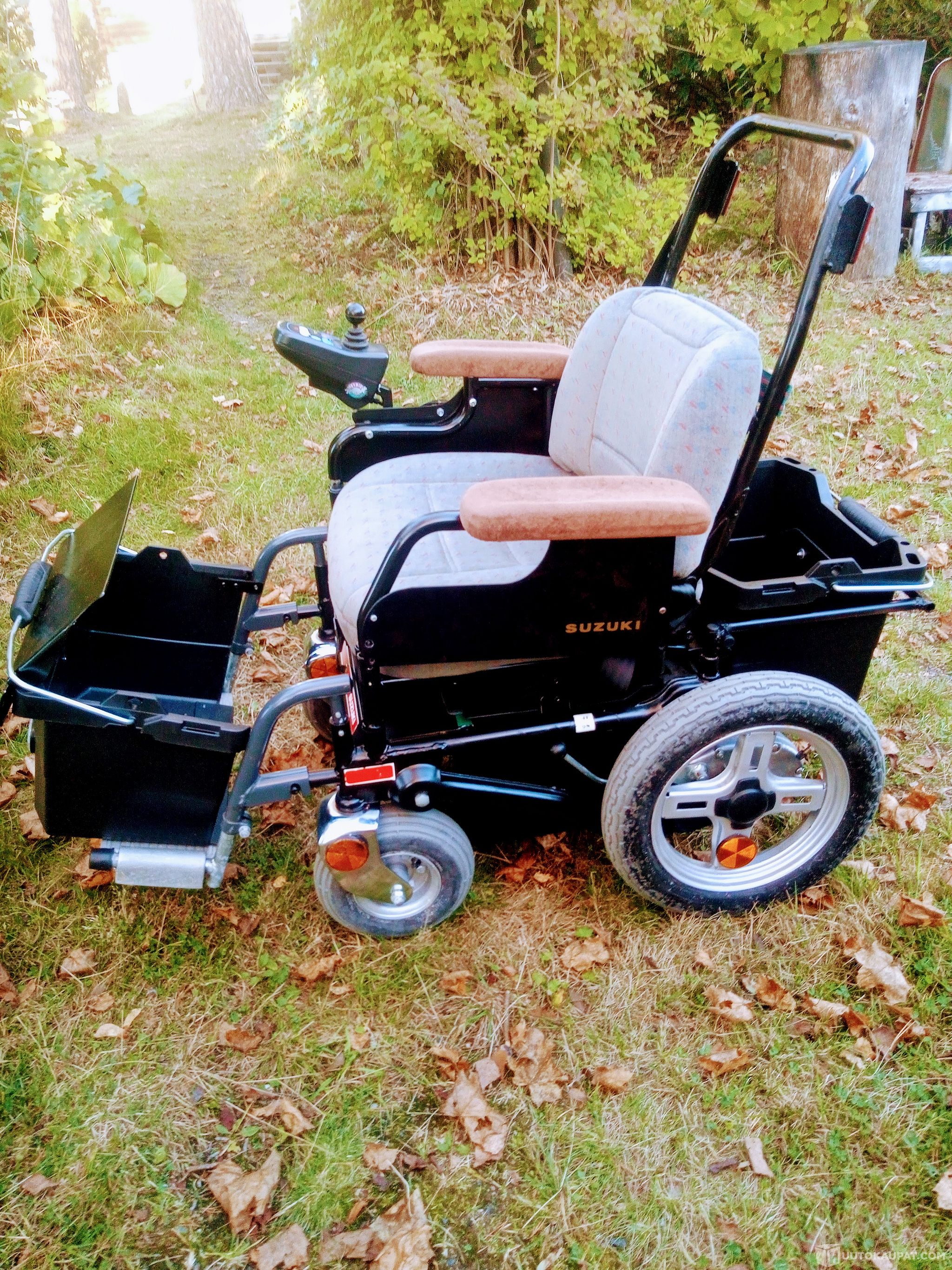 OMINAISUUDET: Ketterä laadukas Suzuki kulkuneuvo, jolla voi jopa pyöriä paikallaan (ajosta on saatavilla Whats Up videoita). Joystick ohjaus jossa nopeuden hienosäätö, pakki ja jarrut. Vaihdenappi jossa 5 vaihdetta ja näyttötaulu. Akun varaustilan näyttö. Äänimerkkinappi. Käynnistys/sammutusnappi. Pyörissä kierrejouset ja camberkallistuksen säätö ja vivut vapaavaihteelle. Tuolissa säädettävä selkänoja, jousi ja vaahtomuovipehmusteet, turvavyö ja turvakaari. Ajopelin mukana tulee käsin tai laitteen perässä vedettävä täysperävaunu, jossa on ilmakumirenkaat ja helposti alas laskettavat laidat.