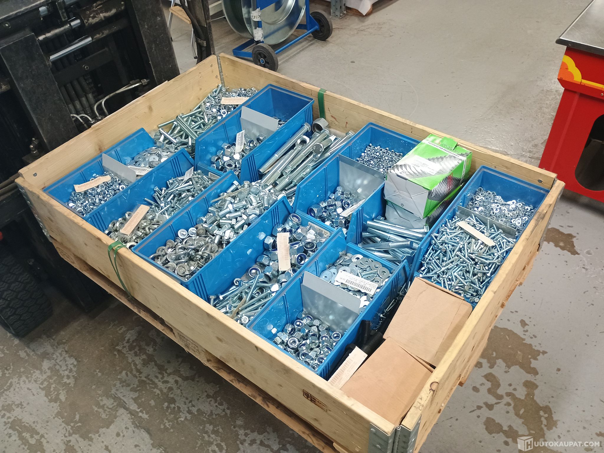 Lavallinen kiinnitystarvikkeita, tarkemmat tiedot näkyvät kuvissa. Punnittu ilman lavaa.