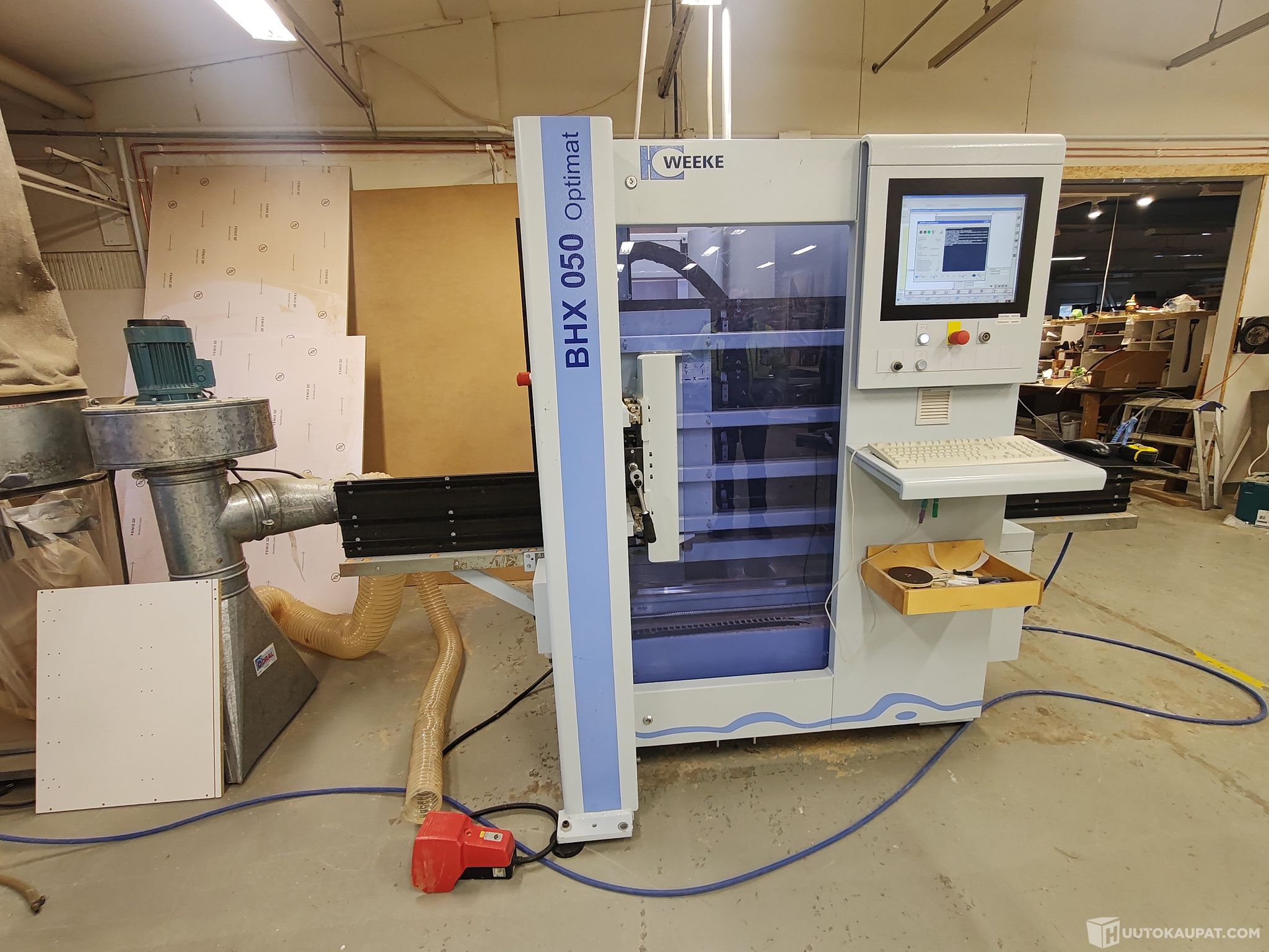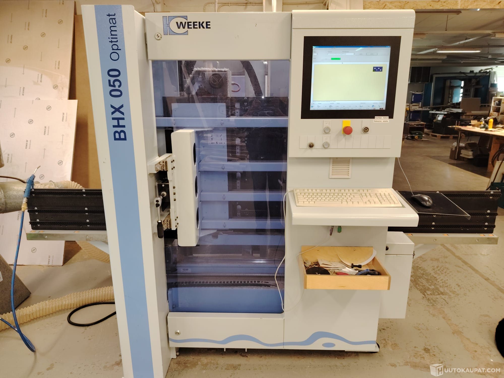 Huutokaupataan otsikon mukainen puuntyöstöön käyvä, ja heti töihin valmis BHX 050 Optimat cnc-kone vuosimallia 2010.