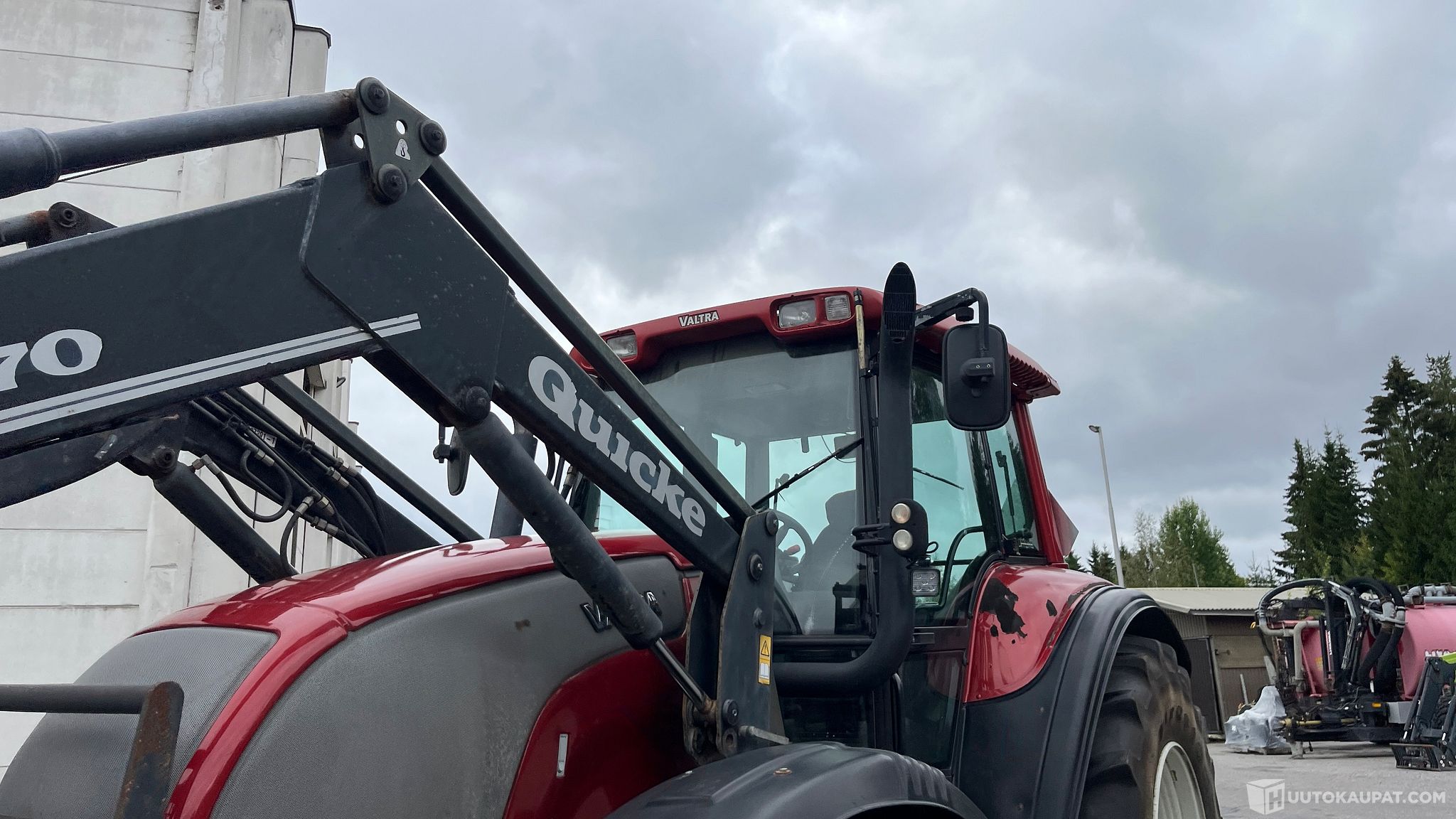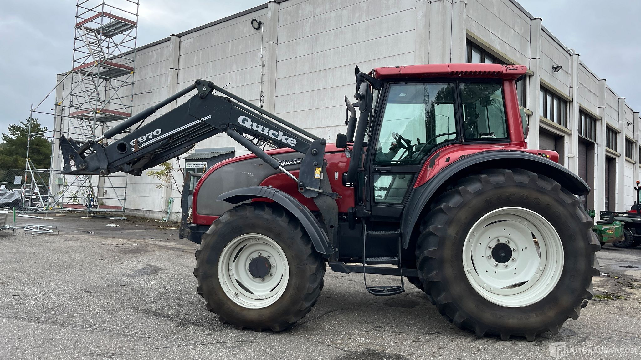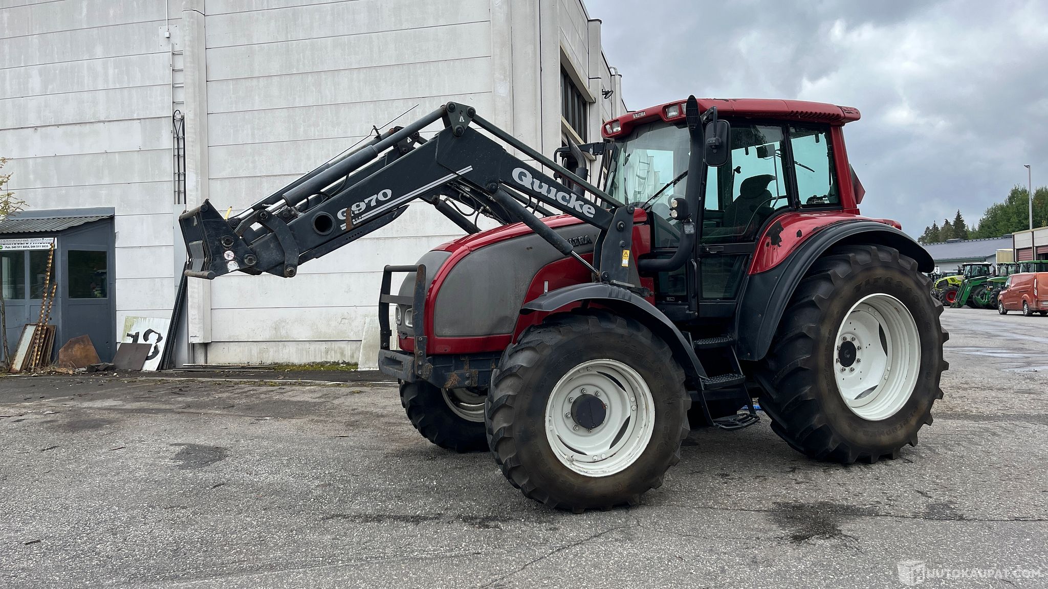 Varusteina mm: - Ilmaistuin - Apumiehen istuin - Ilmastointi - Quicke 970 etukuormaaja + sähkö joikkari, softdrive, sekä 3:s toiminto - Hydraulinen kaltevuudensäädin - Sähkökäyttöinen takanostolaite - Voimanulosotto 540/1000