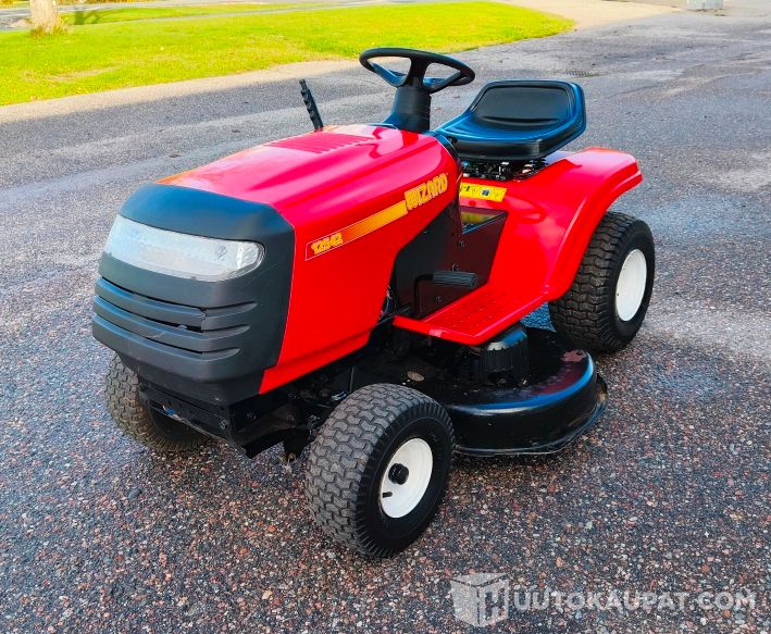 Hyväkuntoinen ja siisti Wizard 12542 -ajoleikkuri. Valmistettu USA:ssa (Electrolux Home Products). Moottorina Briggs & Stratton 12,5 HP I/C OHV, teollisuusluokan nelitahtimoottori.