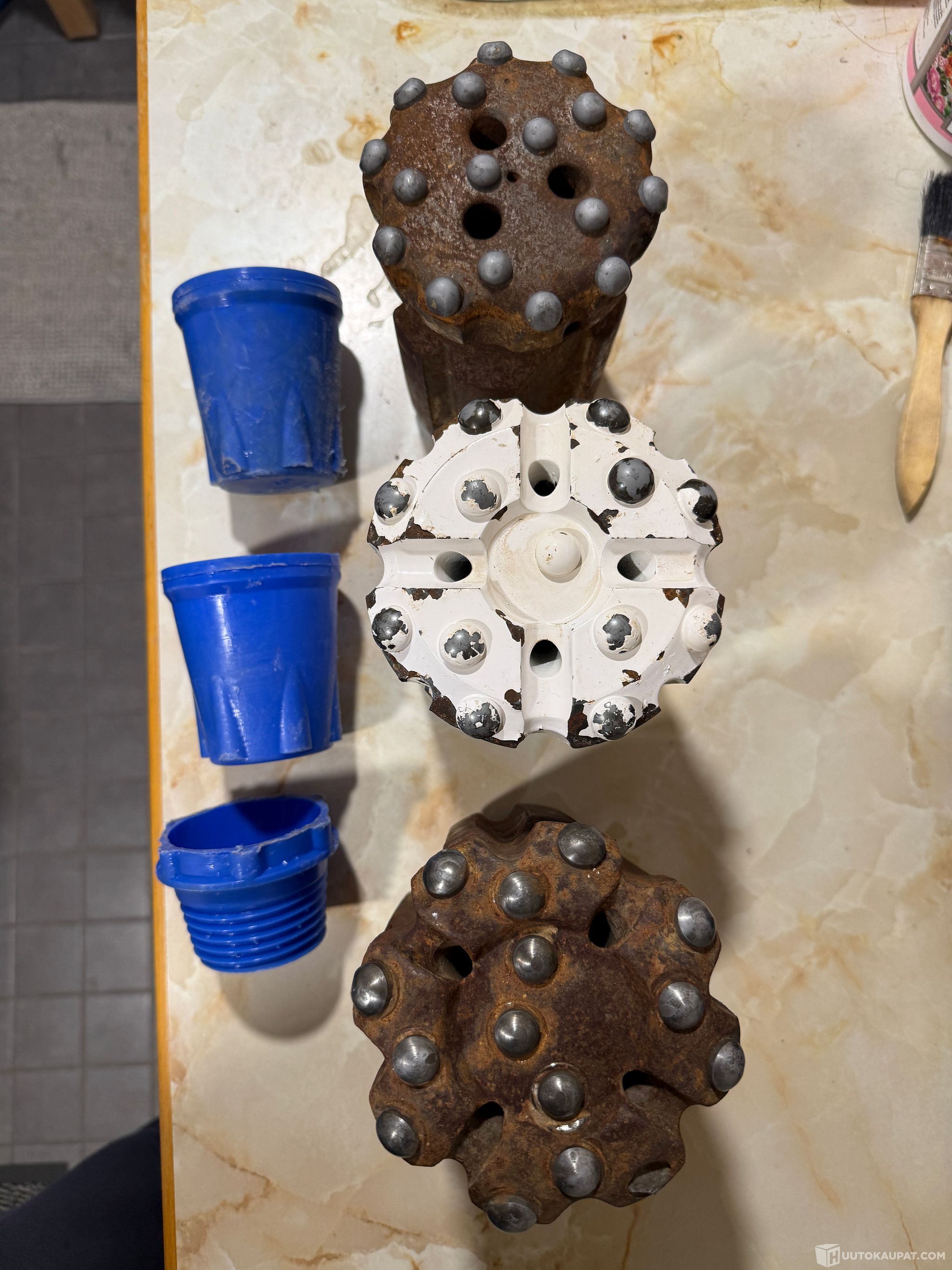 myydään tarpeettomana meille toisen kaupan yhteydessä tulleet porakruunut ja jatkoholkit. Kruunut näyttävät käyttämättömiltä/vähän käytetyiltä. Yhdestä kruunusta on yksi nasta lohjennut. Jatkoholkit käytettyjä, mutta näyttävät ehjiltä. Maanneet astian pohjalla vedessä, joten pintaruostetta. Mitat kuvissa. Jos tarvitse muita mittoja - soita!