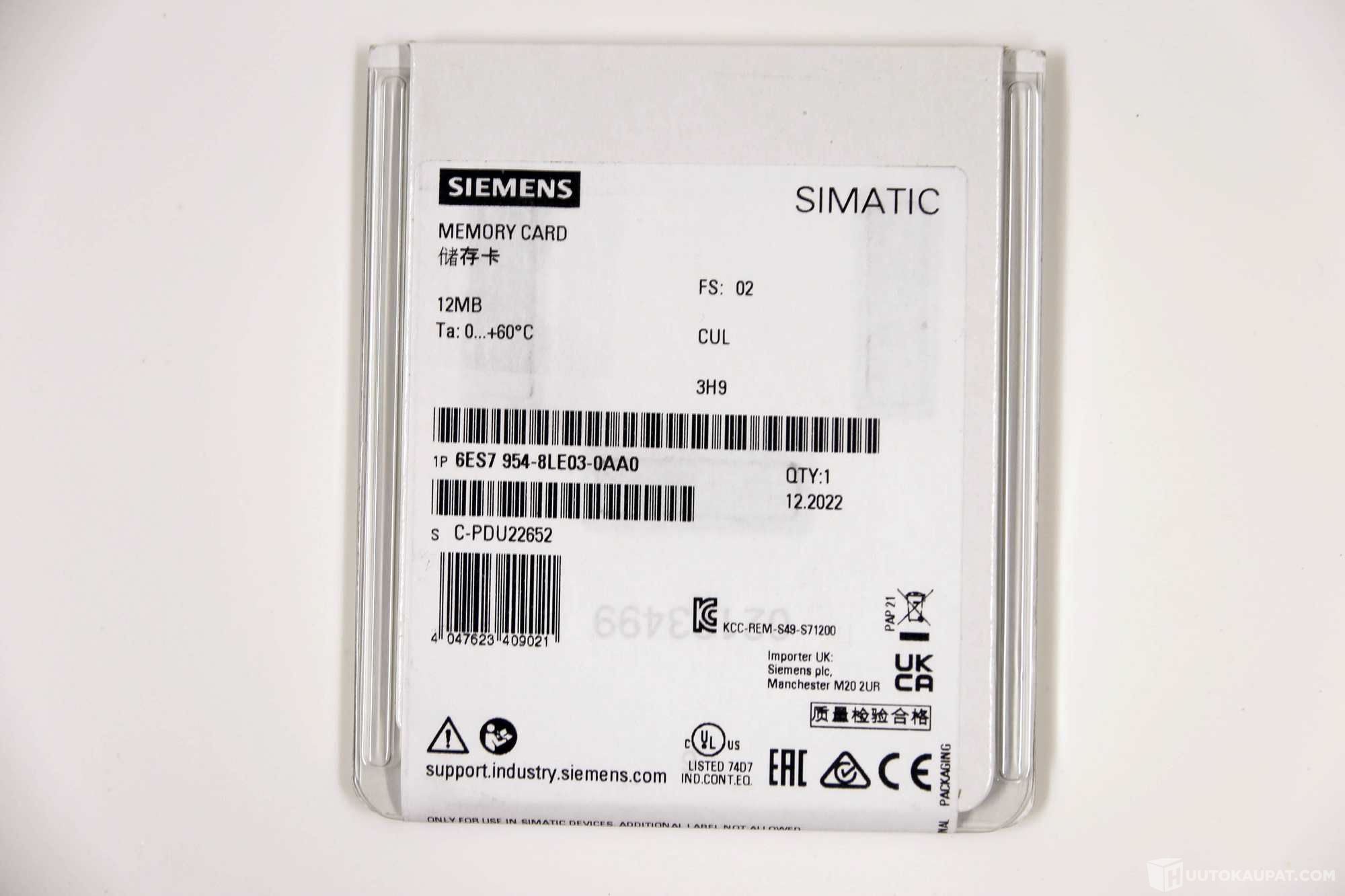 5 kpl Siemens SIMATIC S7 Memory Card 12MB – 6ES7 954-8LE03-0AA0 – uusia. SHK6554, Hausjärvi
