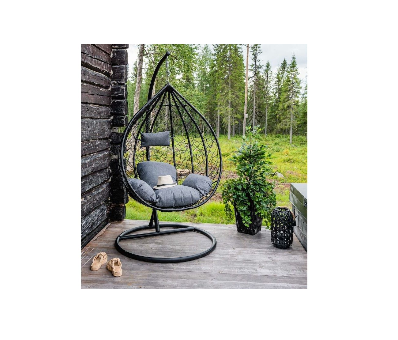 VEKE.FI Varastopoisto - Pallo XL riippukeinu ja teline musta/harmaa pehmuste, - TOIMITUS KOKO SUOMEEN, Oulu