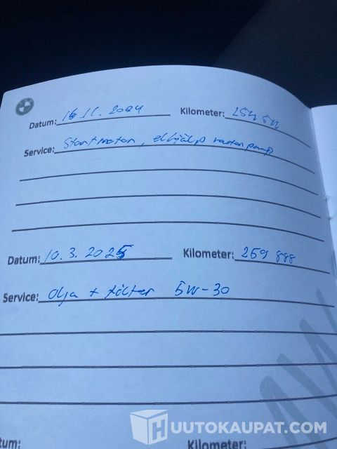 Viimeisin huolto tehty 259888 km kohdalla 03 / 2025