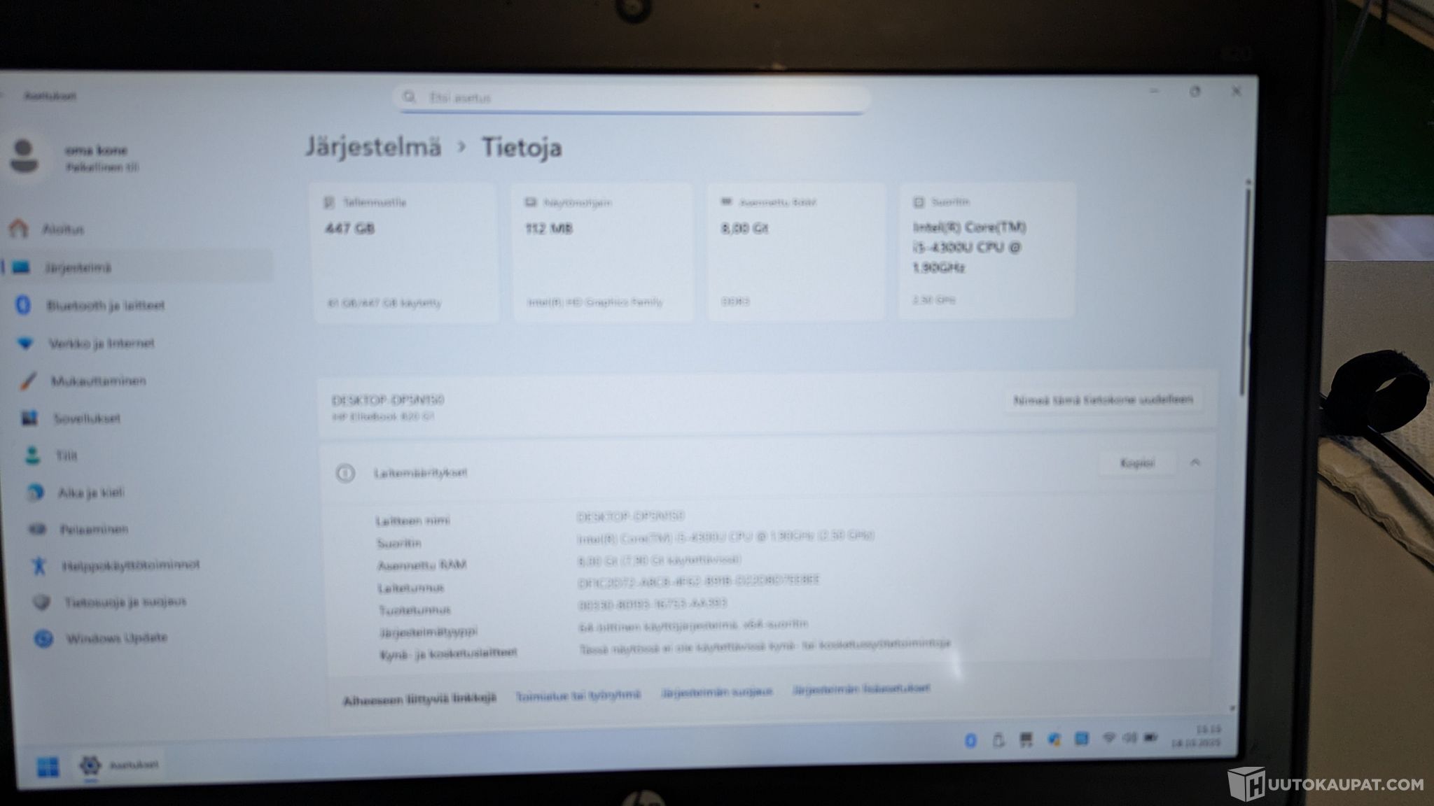 🧠 Suoritin: Intel Core i5-4300U (2 ydintä, 4 säiettä, jopa 2.9 GHz Turbo)
