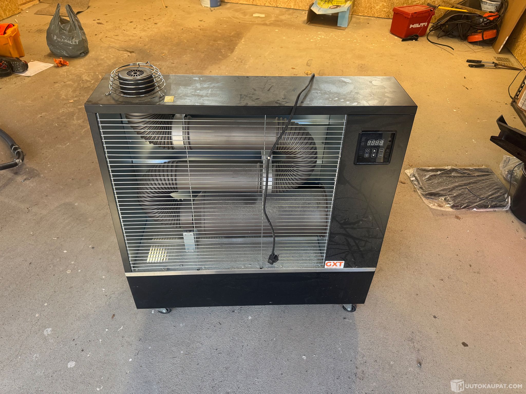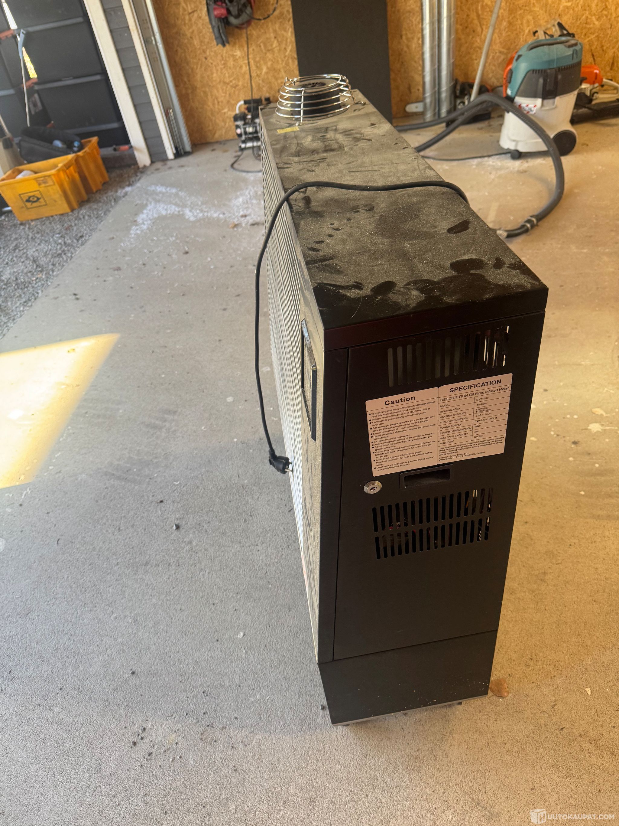 Ollut käytössä 2kk, autotallin rakentamisen ajan. Toimii hyvin ja pieniruokainen. Myydään nyt tarpeettomana pois. --> Mukaan kaukosäädin.