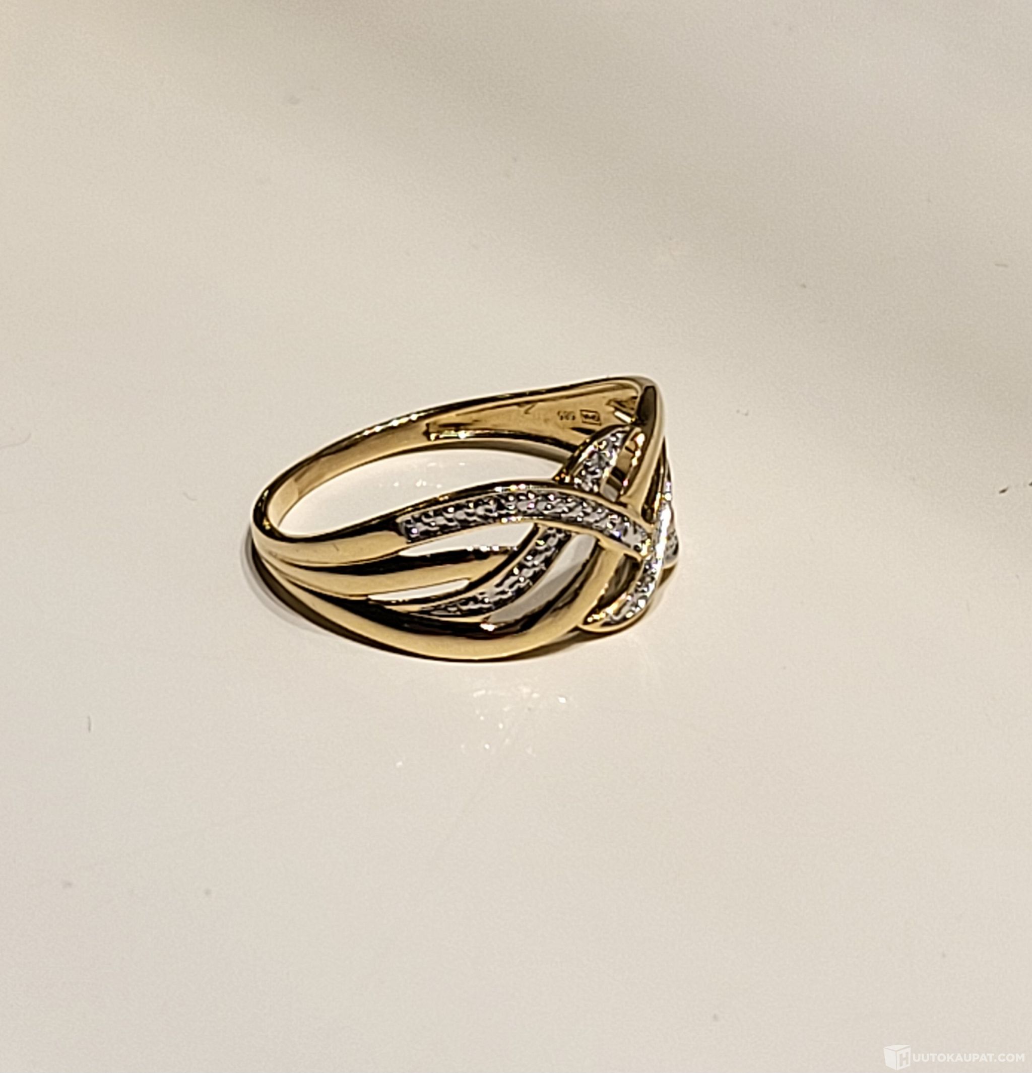 14K 585 Kultainen timanttisormus, 3 timanttia, Isokyrö