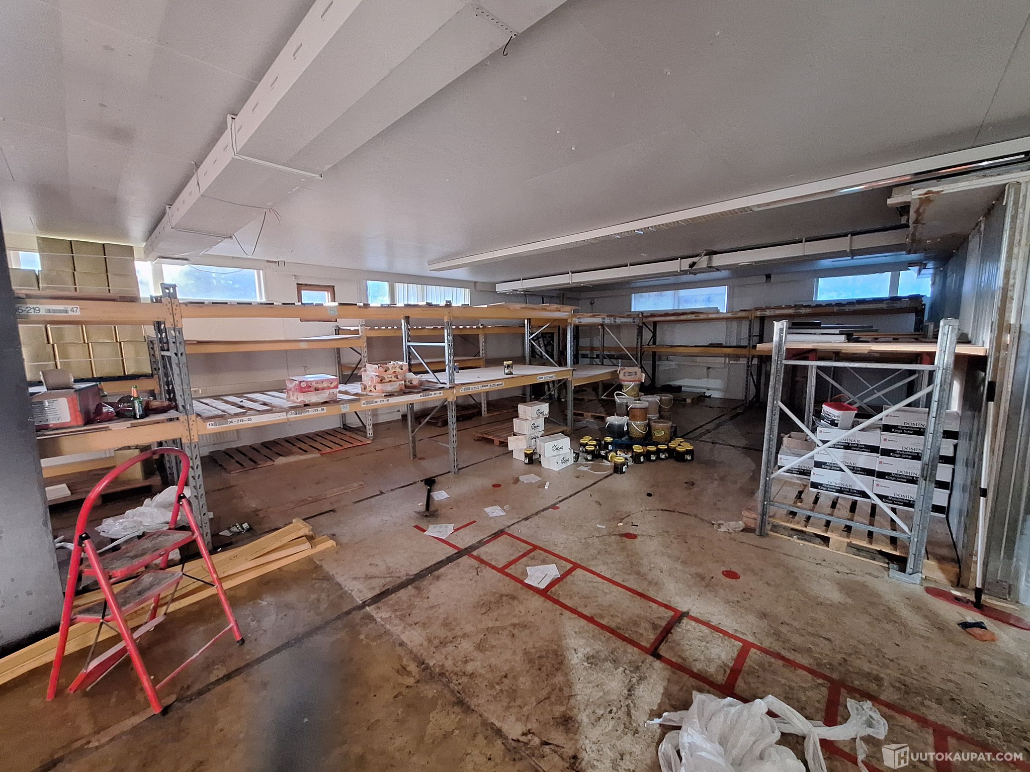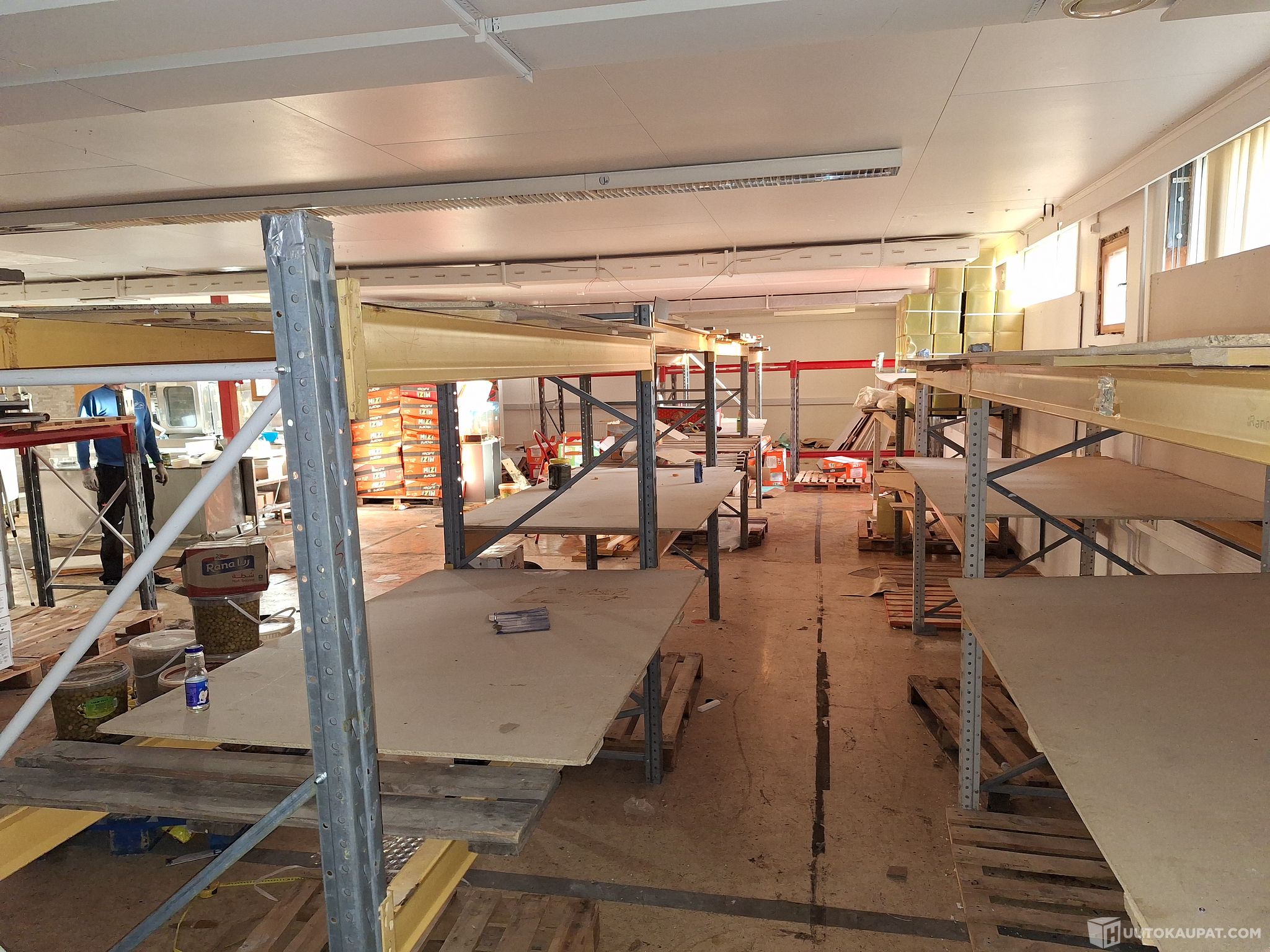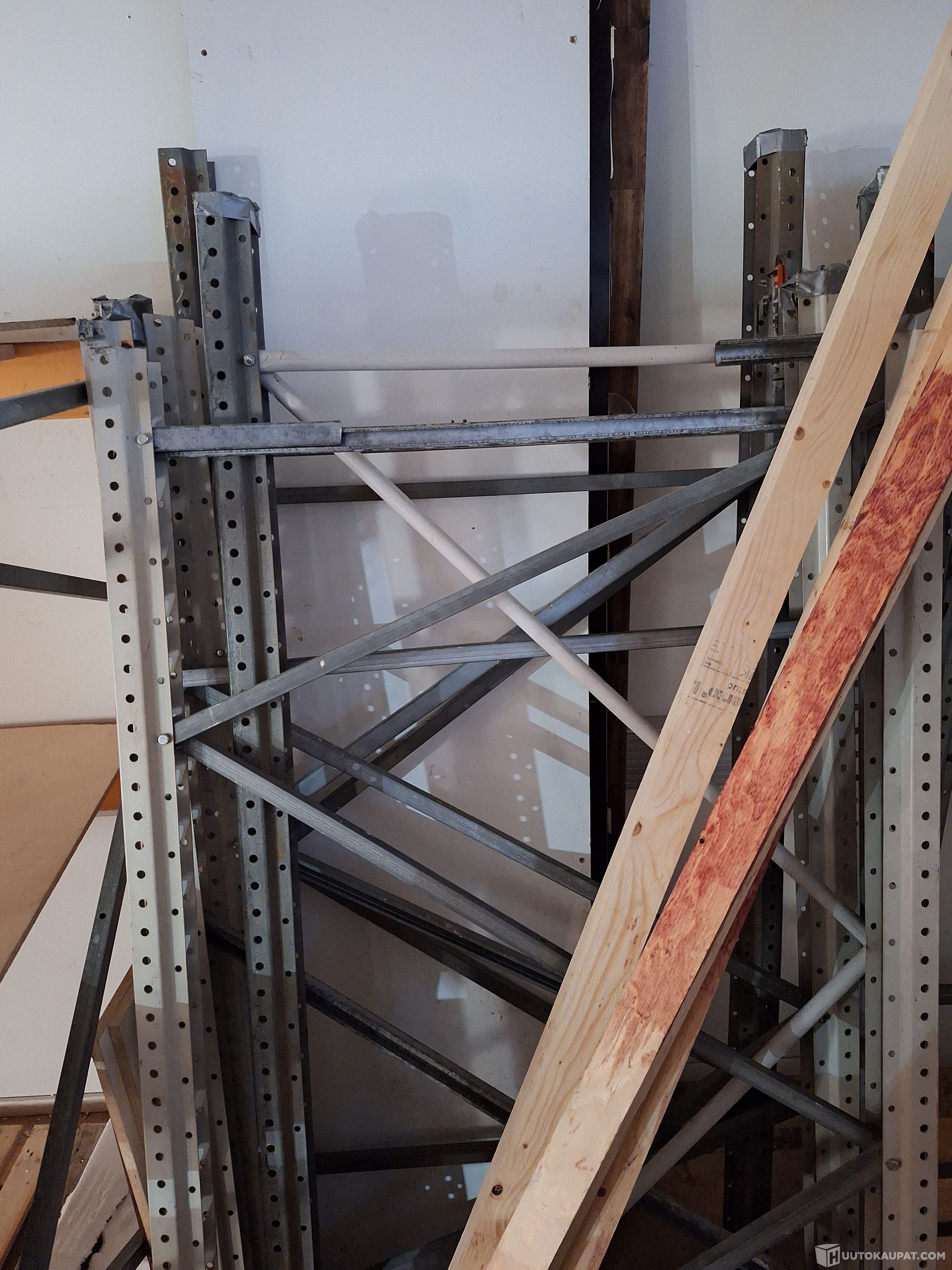 Kuormahyllyjen pituus yht 36m (keltasta hyllyä 26m ja punaista 10m). Lisäksi kahden viimeisen kuvan hyllymateriaalit kuuluu kohteeseen (näitä ei ole laskettu 36 metriin).