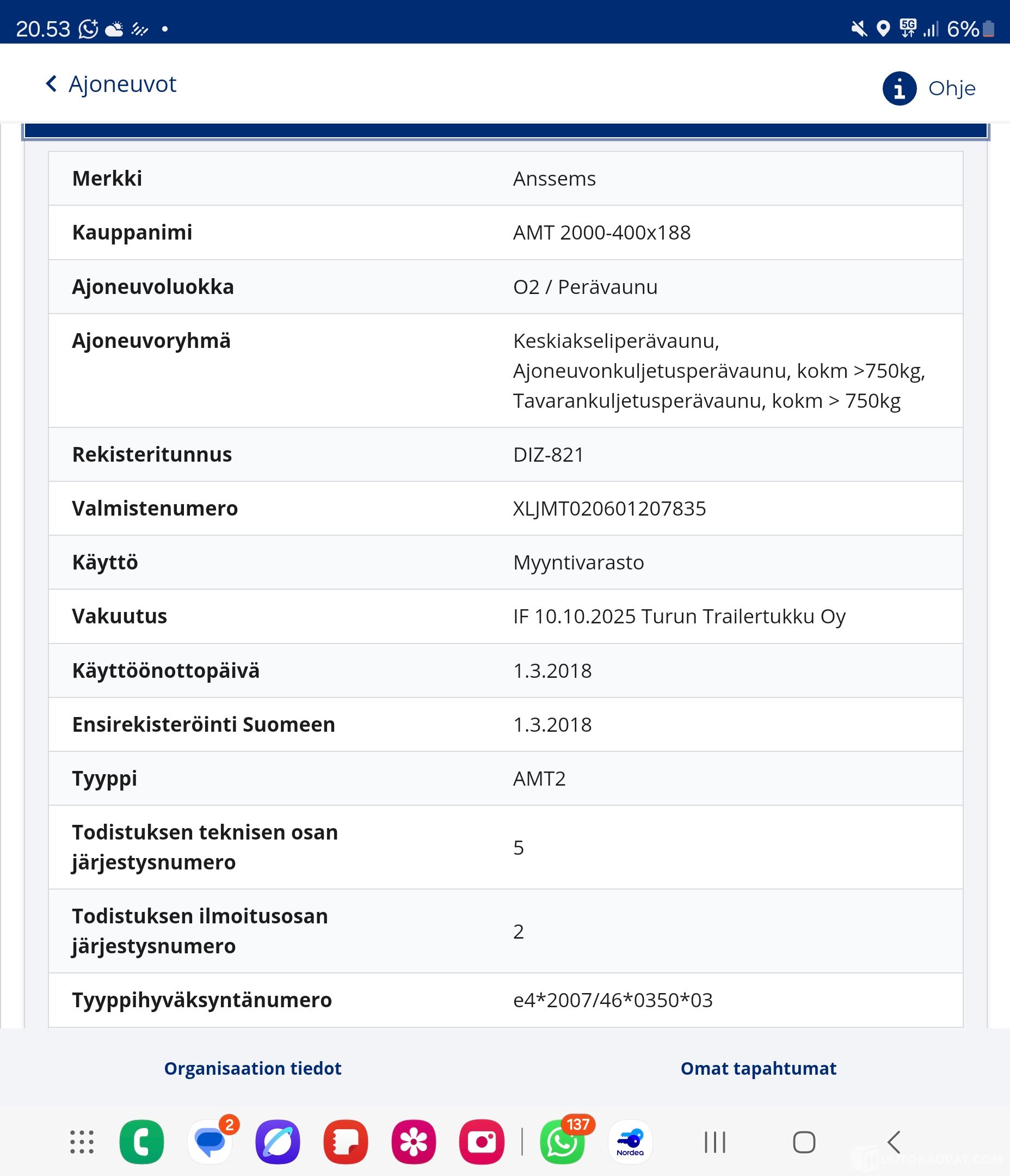 Tämän kohteen myyjä on Huutokaupat.com. Turun Trailertukku Oy antaa Huutokaupat.comin puolesta kohteesta lisätietoja ja vastaa kohteen luovutuksesta. Kohde tulee aina maksaa Huutokaupat.com-sivustolla olevien verkkomaksupainikkeiden kautta tai Huutokaupat.comin laskulla. Jos kohdetta ei makseta Huutokaupat.comille, Huutokaupat.com ei hyväksy mitään vastuuta kaupasta.