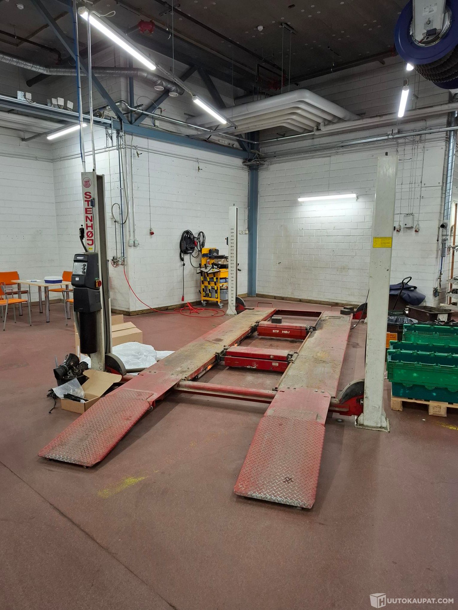 Stenhöj siltanosturi 4000kg. Vuosimalli 2009, viimeksi tarkistettu 2023. Aikaisemmin säännöllisesti huollettu. Ravistinlevy oikealla puolella. Kaksi 2000kg keventimiä.