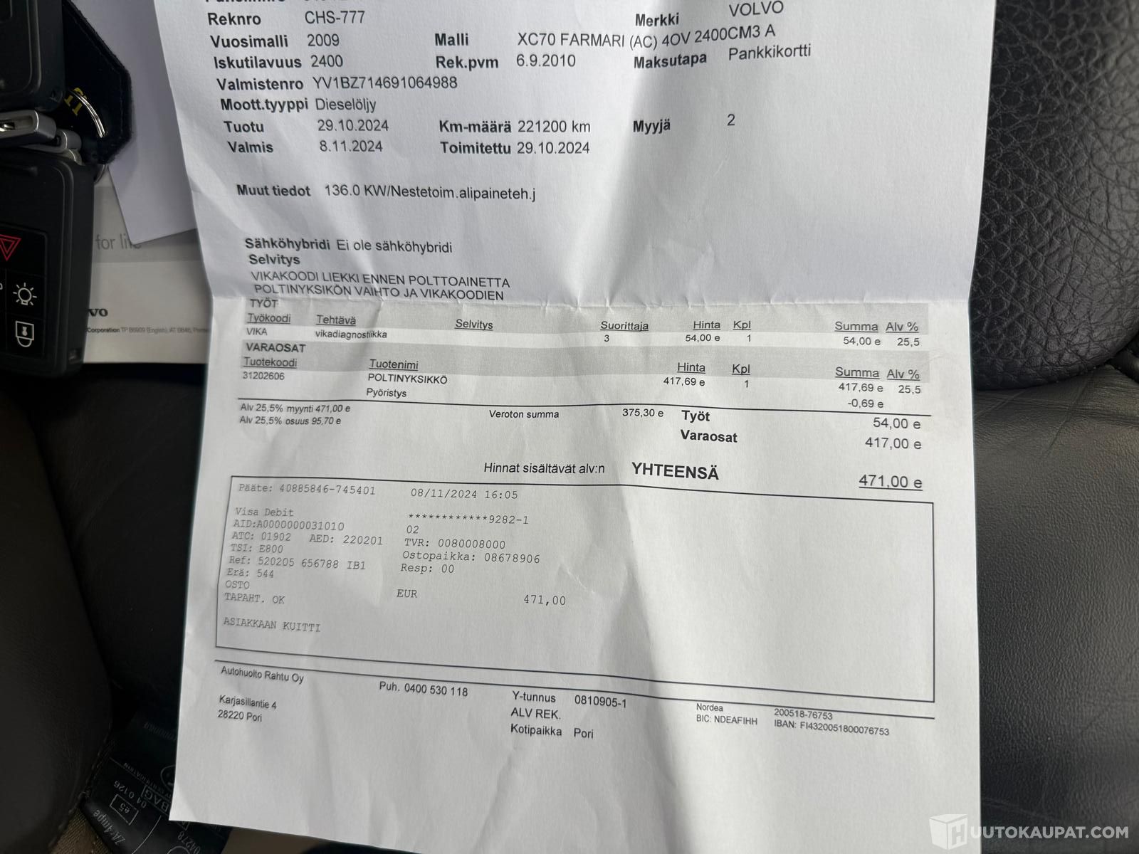 Autoa huollettu hyvin ja seuraava katsastuskin vasta 9kk päästä!