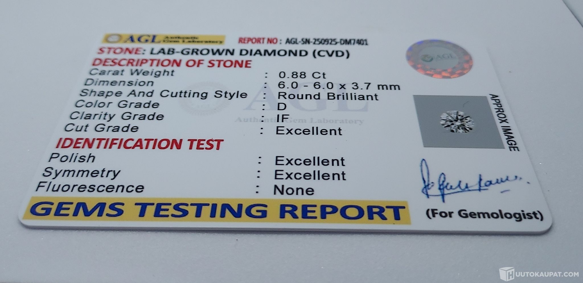 0,88 Ct, Laboratoriotimantti, Helsinki