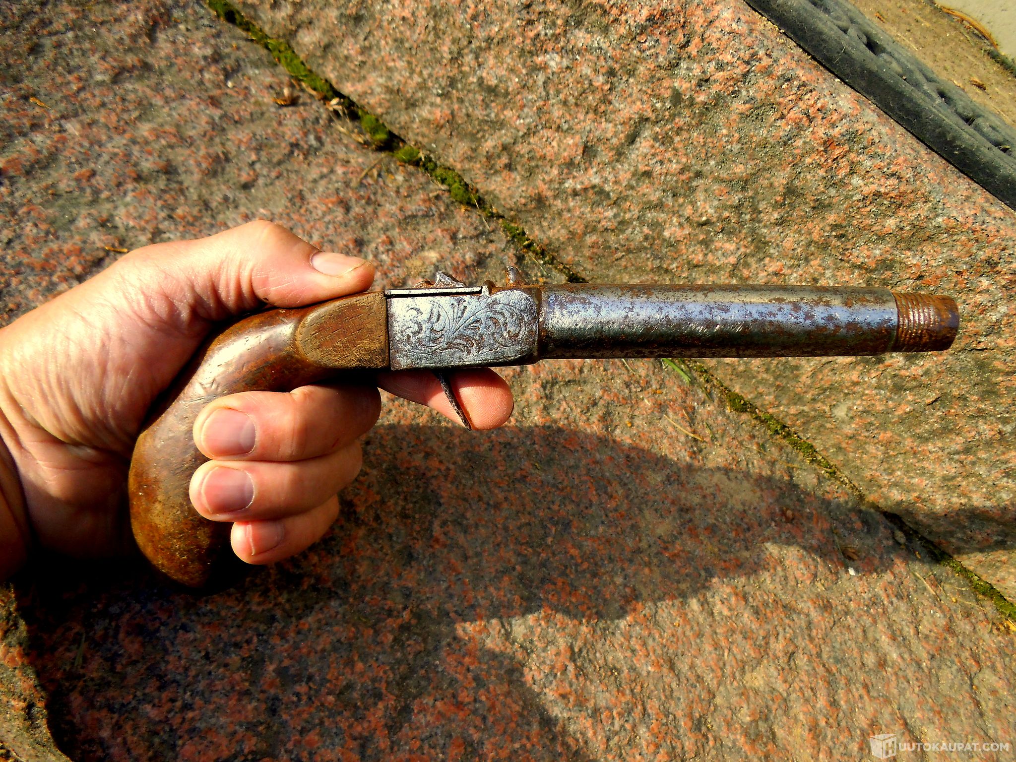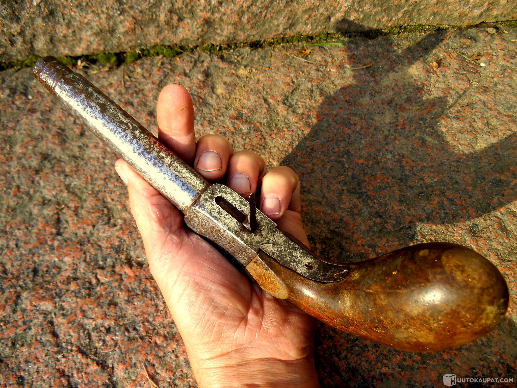Salametsästäjän jatkettava pistooli ase nallilukkopistooli suustaladattava antiikkiase 1800-luku !!, Vehmaa