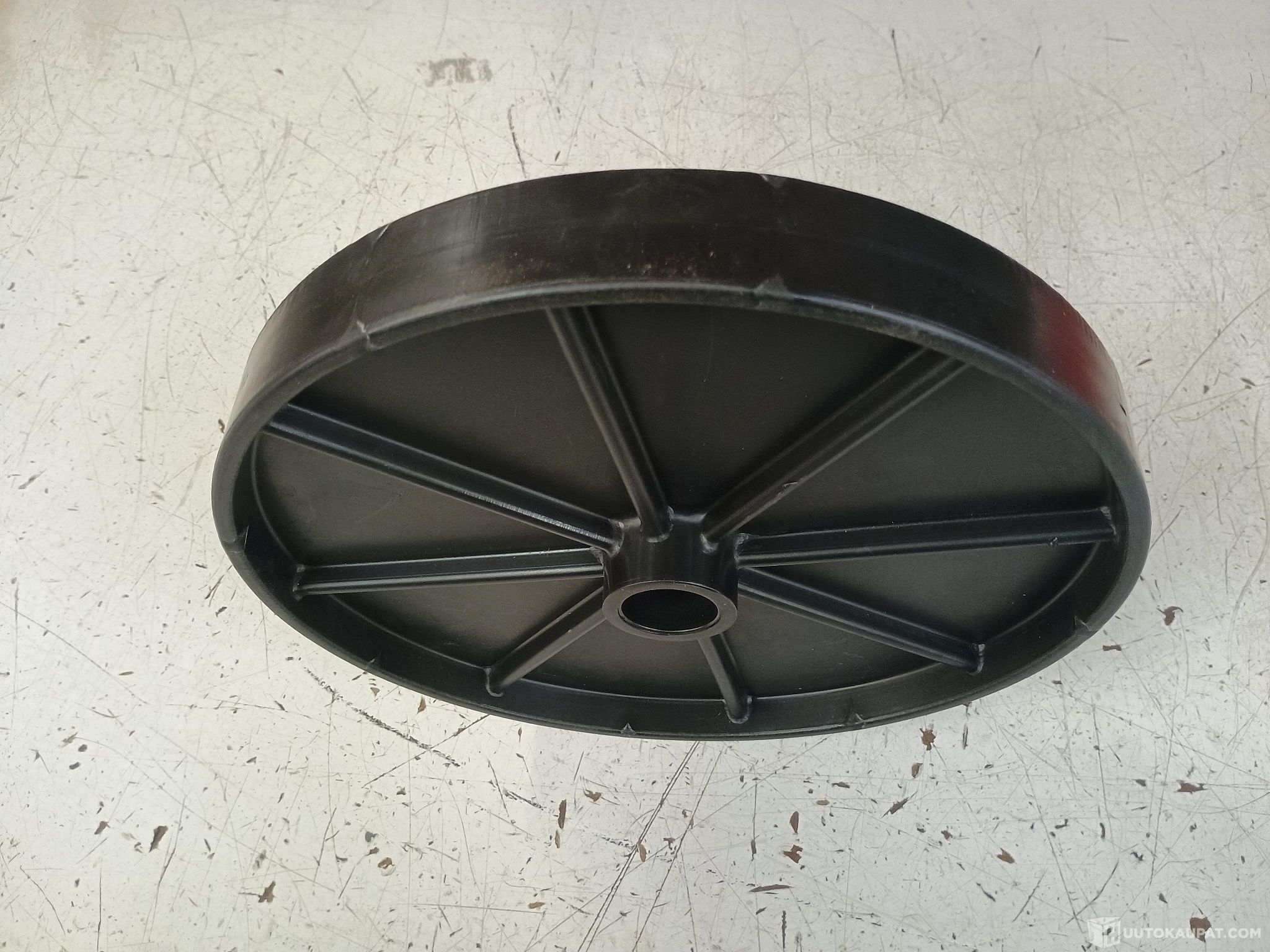 Junkkari Simultan muovisia jyräpyöriä. Halkaisija 300mm, leveys 40mm. Keskireikä 27mm, molemmin puolin 32mm laakeripesät.