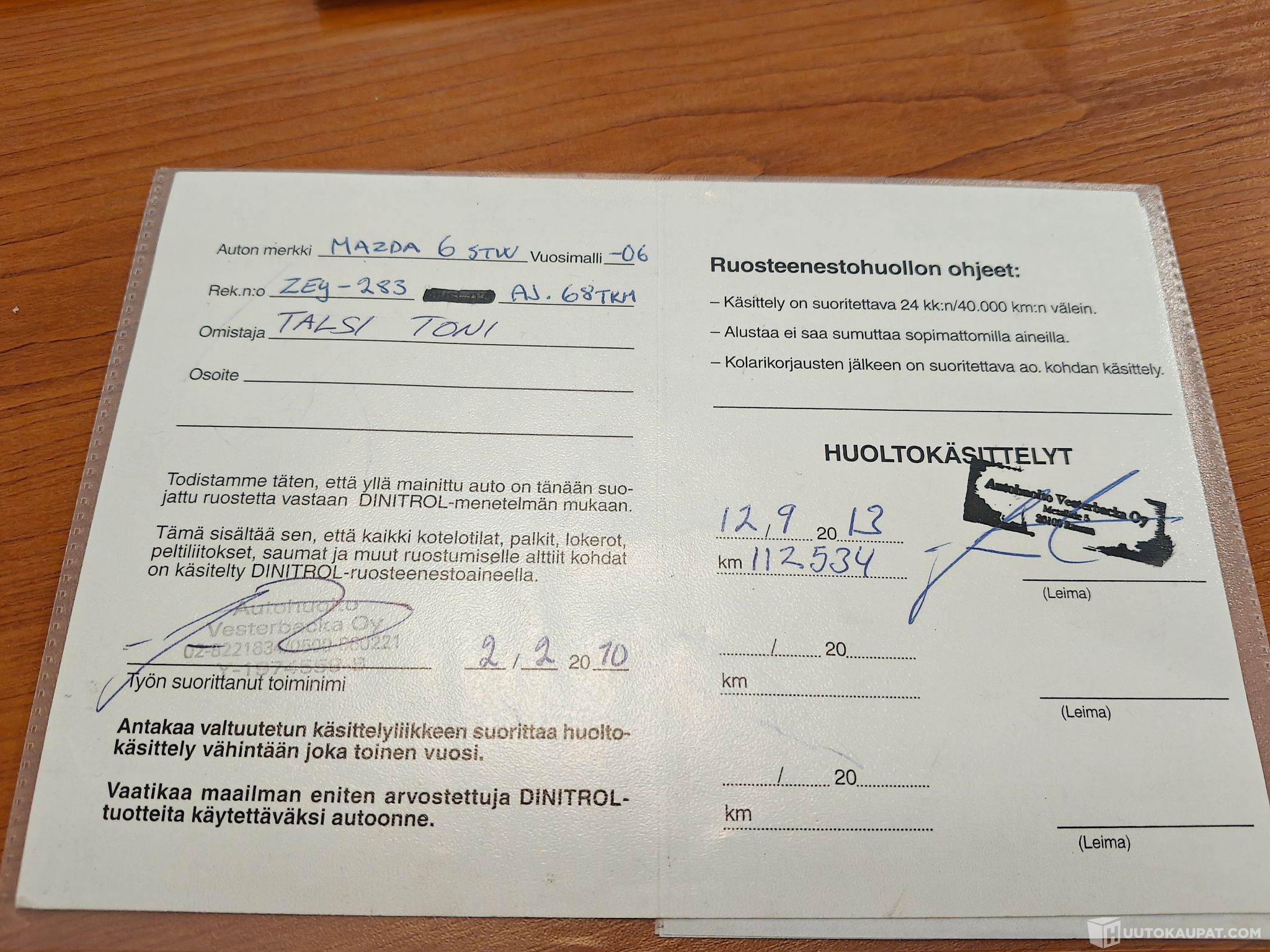 Katsastuksen vikalappu kuvattu, käy kolmella pytyllä vikaa ei tutkittu paremmin.