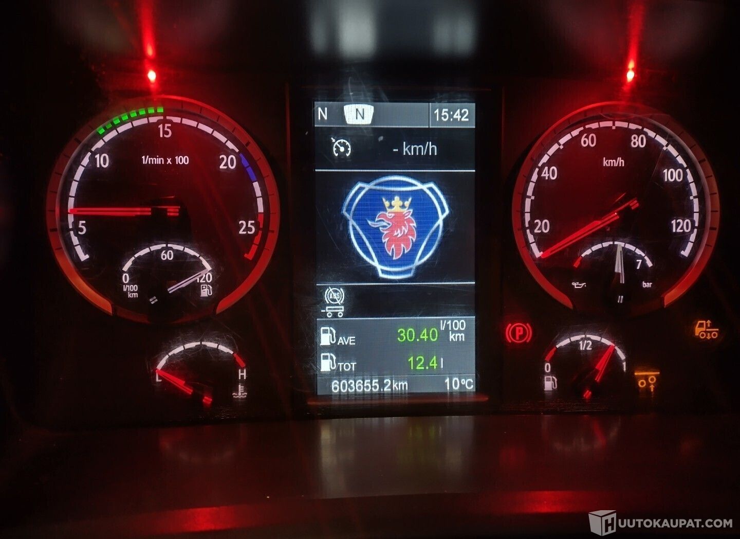 Teho: 412 Kw / 560 Hv, Kokonaispaino: 33 000 kg, Kytkentätapa: Ei ilmoitettu, Päästöluokitus: Euro 5, Vaihteisto: Automaatti, Taka-akseli: Akseli, Ohjaamon tyyppi: Korkea, Ohjaamon väri: Beige, Jousituksen tyyppi: ilma / ilma, Jarrujen tyyppi: levy