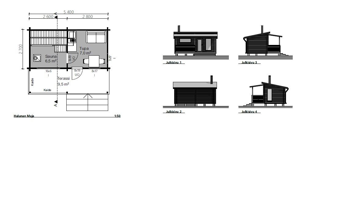 sauna 6,5m2 tupa 7m2