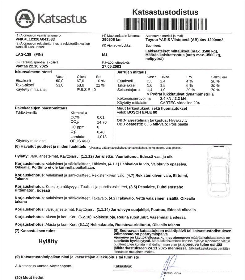 Katsastuksessa tuli tällä kertaa hylky, syynä vaurioituneet jarruletkut.
