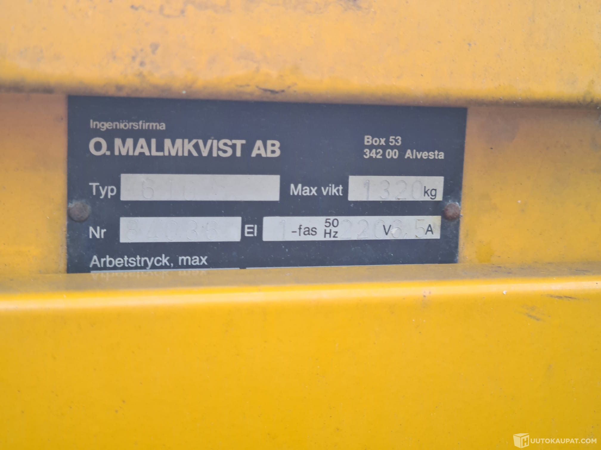 Tämän kohteen myyjä on Huutokaupat.com. Koneurakointi H. Mäenpuro Oy antaa Huutokaupat.comin puolesta kohteesta lisätietoja ja vastaa kohteen luovutuksesta. Kohde tulee aina maksaa Huutokaupat.com-sivustolla olevien verkkomaksupainikkeiden kautta tai Huutokaupat.comin laskulla. Jos kohdetta ei makseta Huutokaupat.comille, Huutokaupat.com ei hyväksy mitään vastuuta kaupasta.