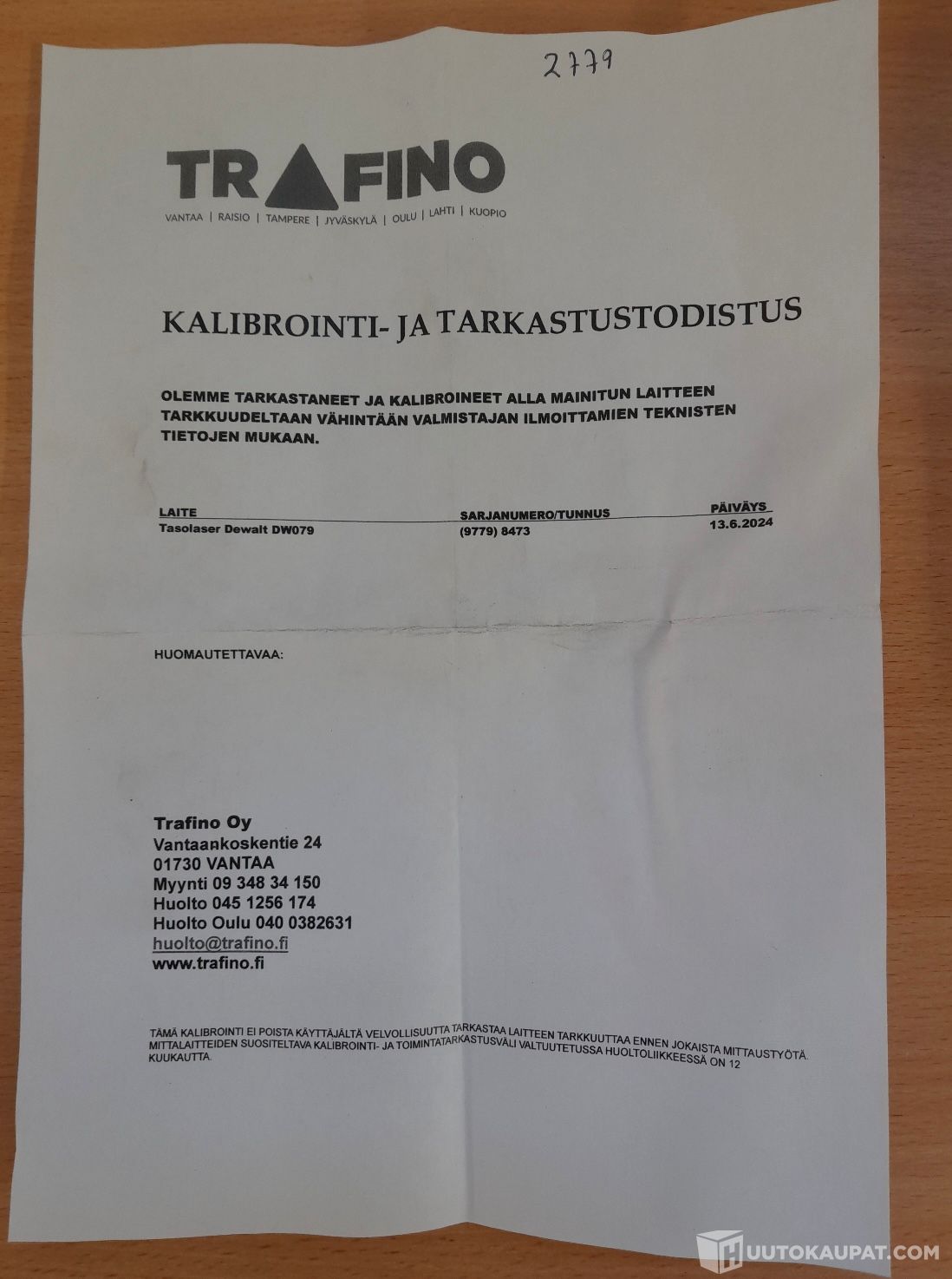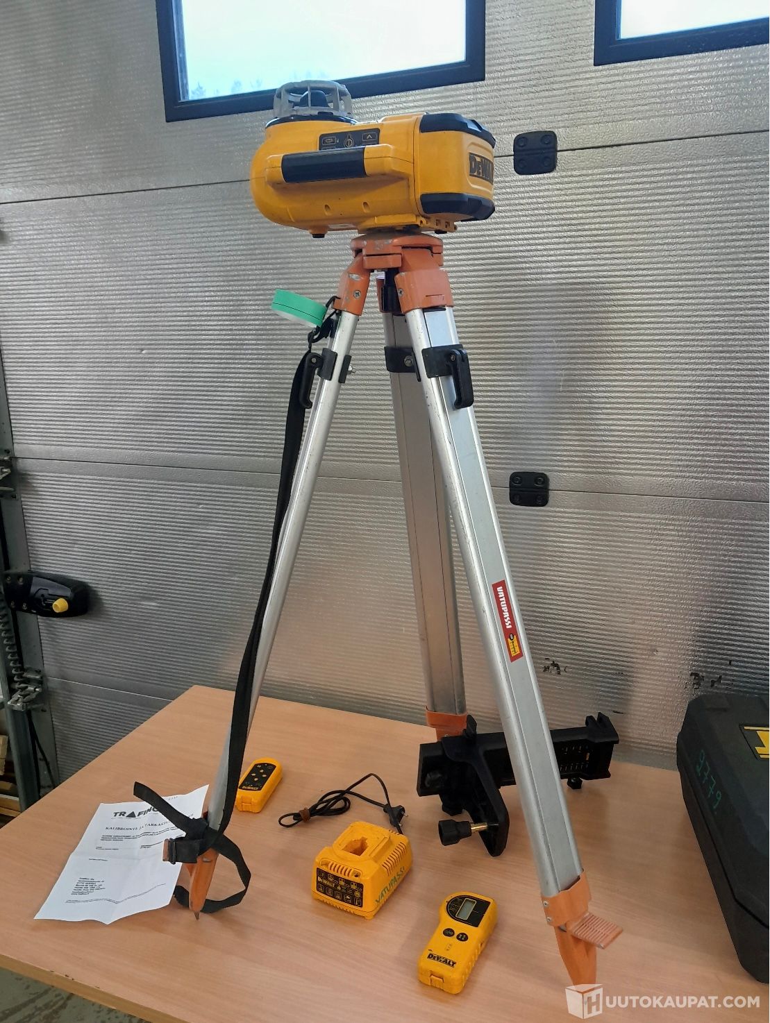 Mukaan tulee: kuljetuslaukku,seinäkinnike, kaukosäädin, vastaanotin, kolmijalka, 1 akku + laturi, kalibrointitodistus 13.6.2024