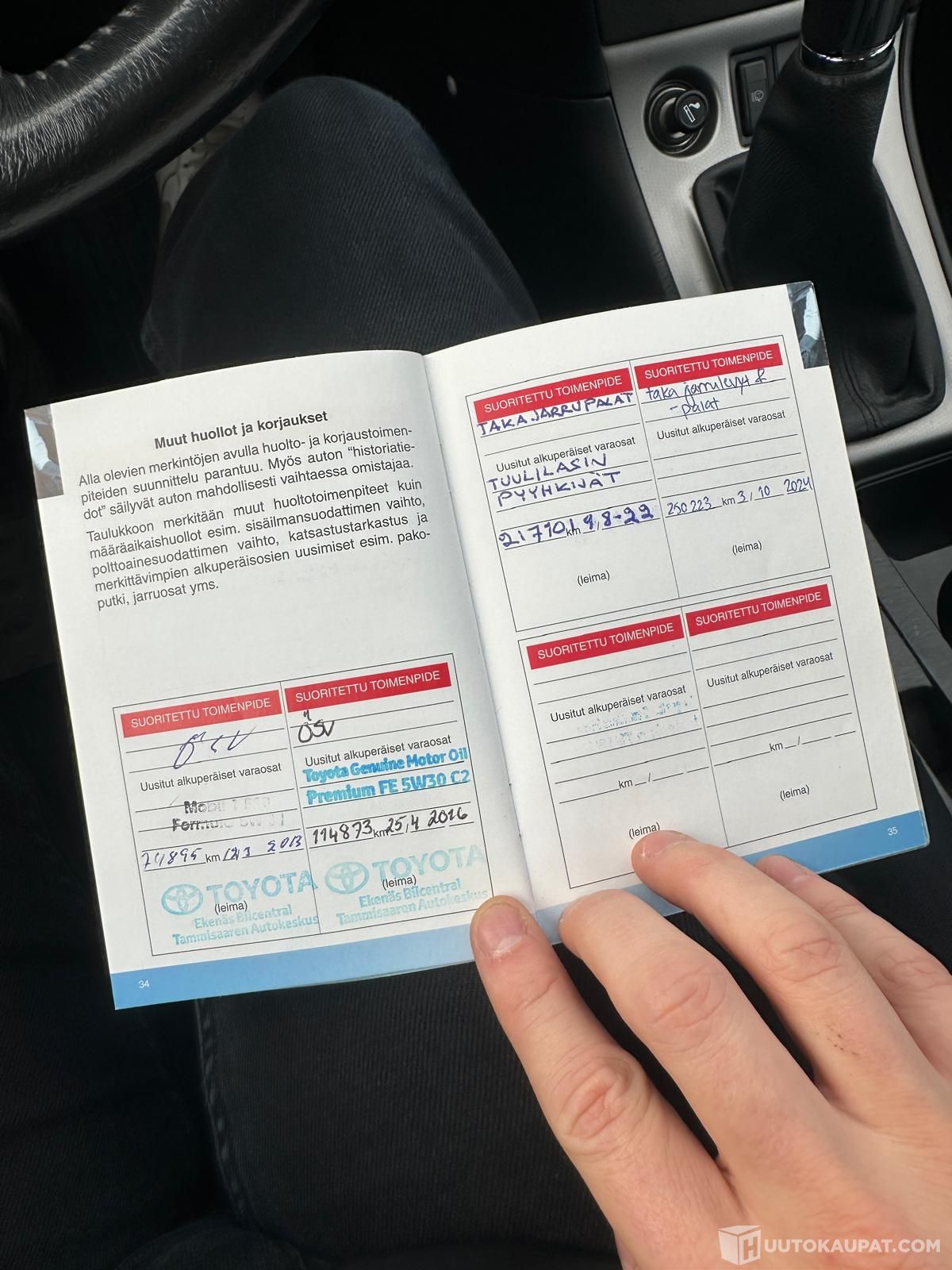 Huoltokirja kuvattuna valokuviin.