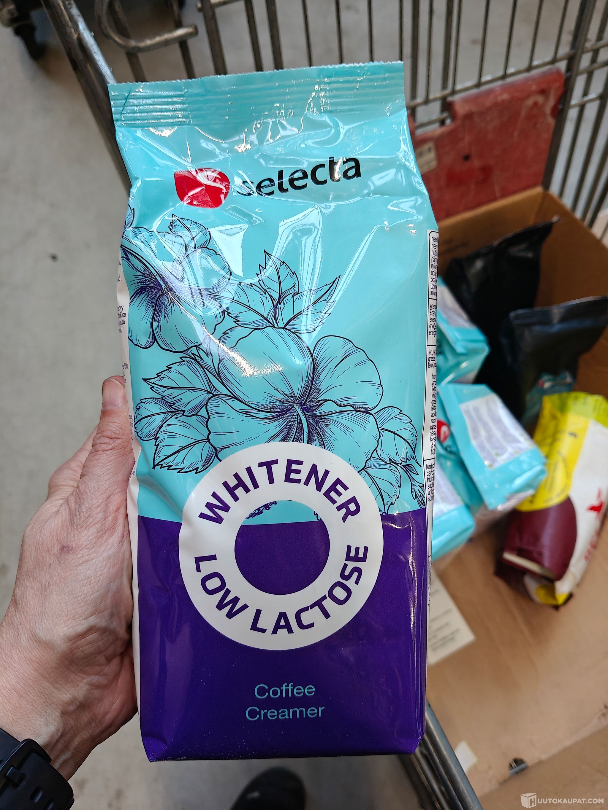 3 ltk creamer, kasvisrasvajauhe, Vähälaktoosinen kasvirasvasekoite, jota käytetään maidokkeena kahviautomaateissa.