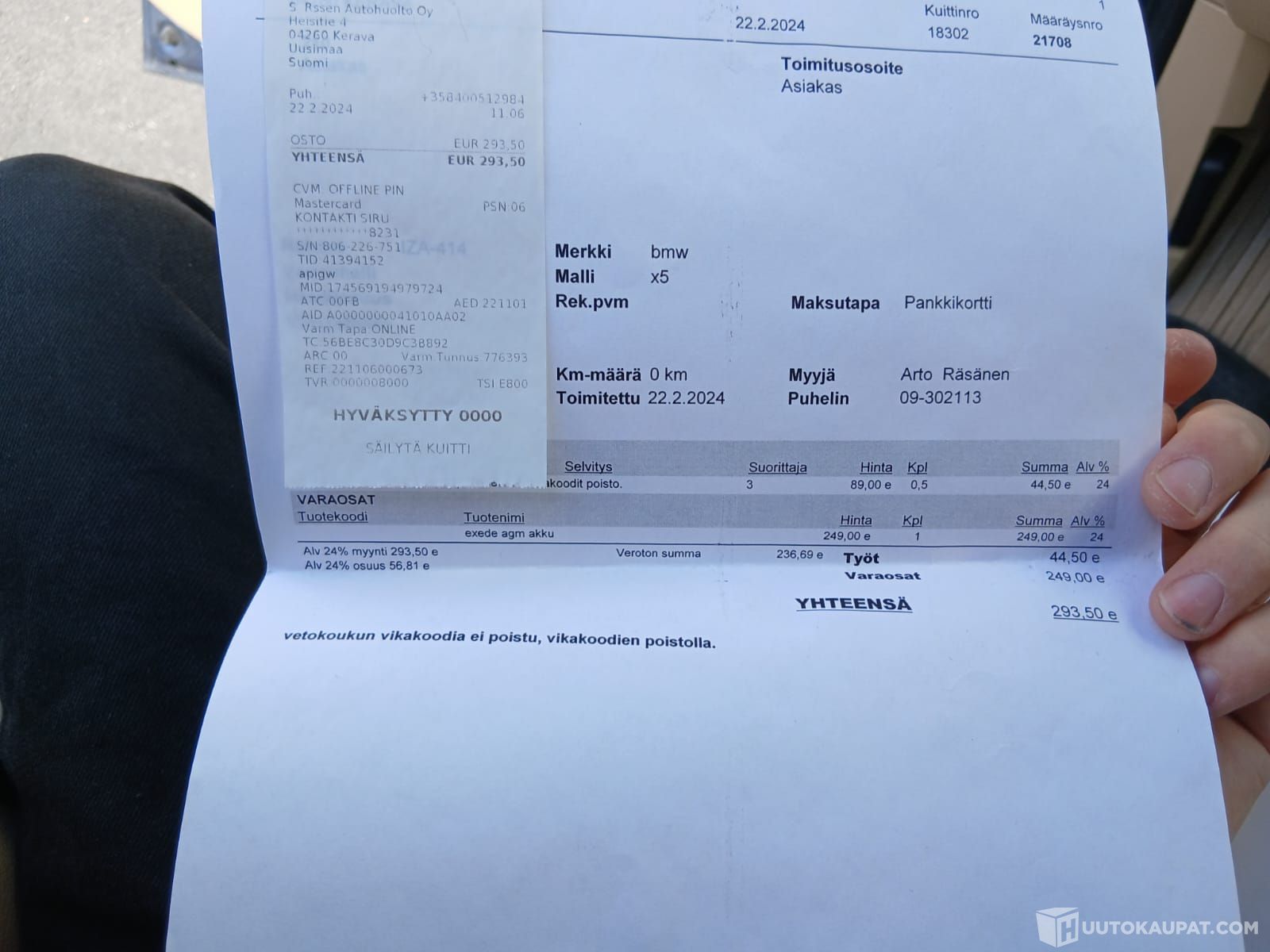 Huoltohistoria (tositteet tehdyistä huolloista)