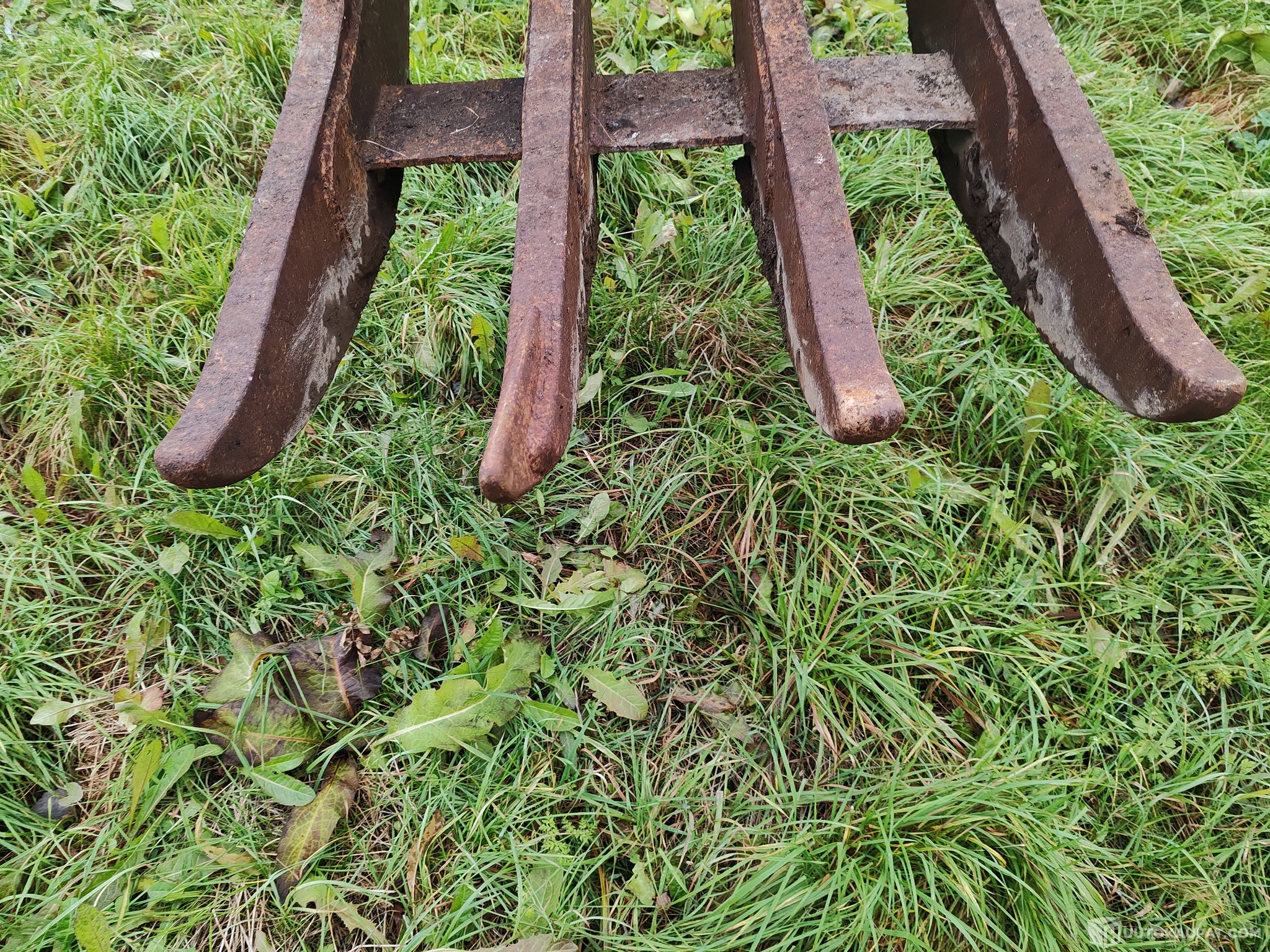 Huutokaupataan asiakkaan toimeksiantona uuteen kotiin kuvissa näkyvä NTP-10 kantohara jonka piikit ovat tehty 5,5cm paksusta materiaalista.