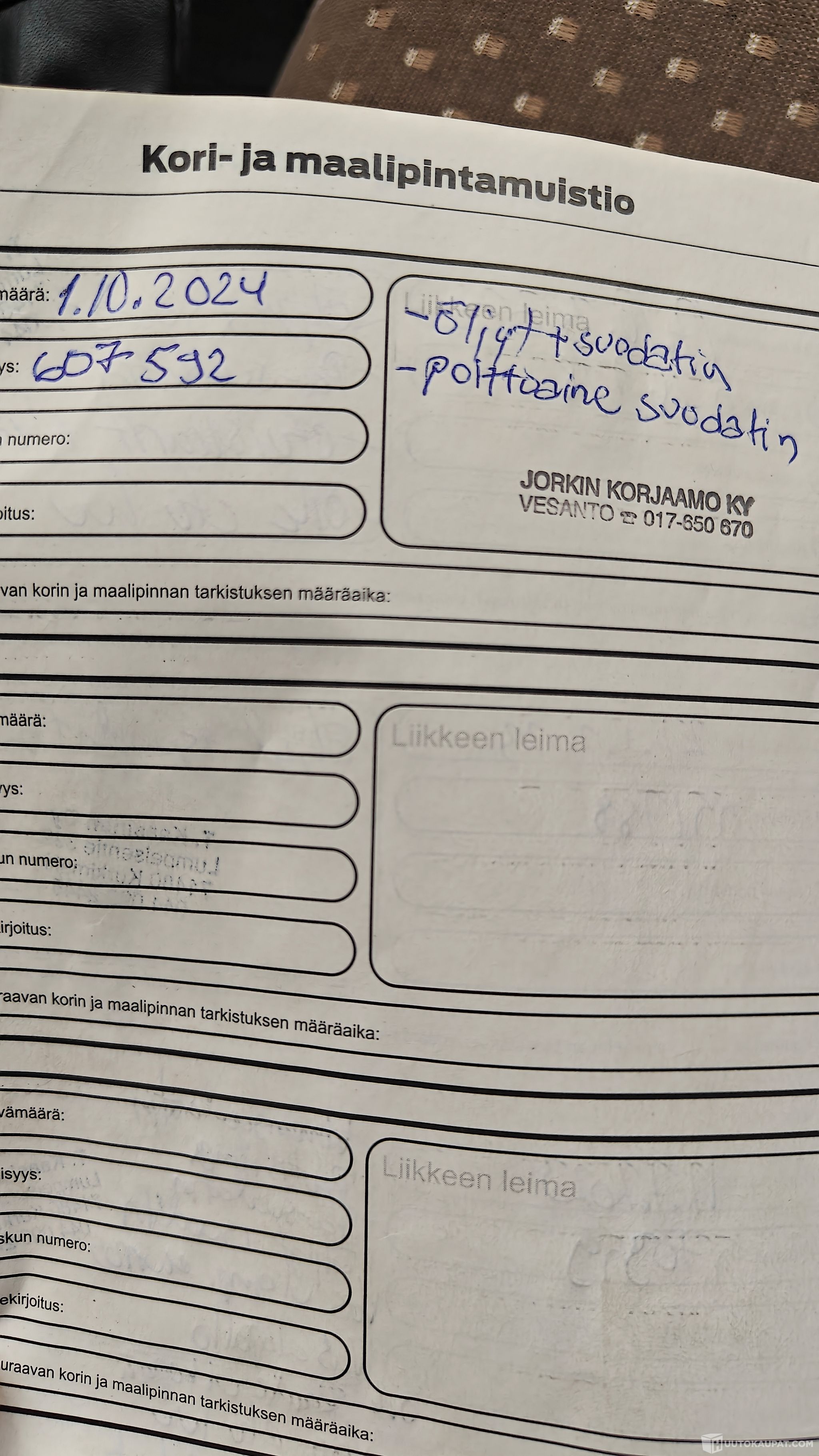 Rinta-Joupin Autoliike Oy ilmoittaa, Huutokaupat.com myy