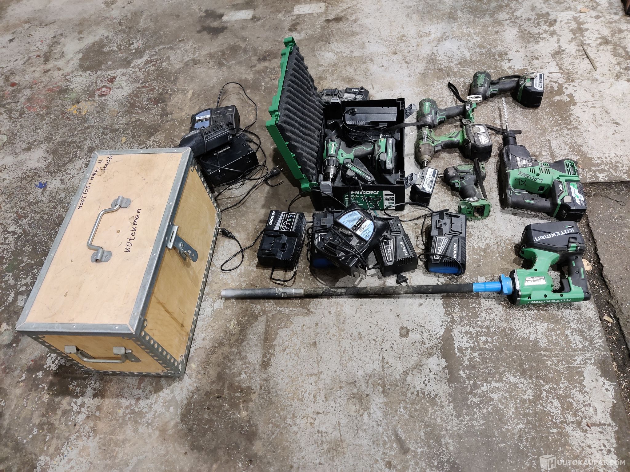 Hikoki työkaluja, vaneripakki (erä 335) Kotekman Oy konkurssipesä 3516027-4, Kotka