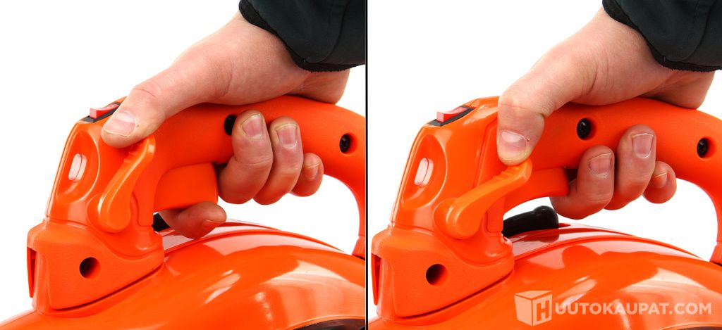 Luotettava DEMON® -merkkinen puhallin on varustettu säädettävällä puhallusvoimalla, jota voidaan säätää kaasun ohjauspainikkeella.
