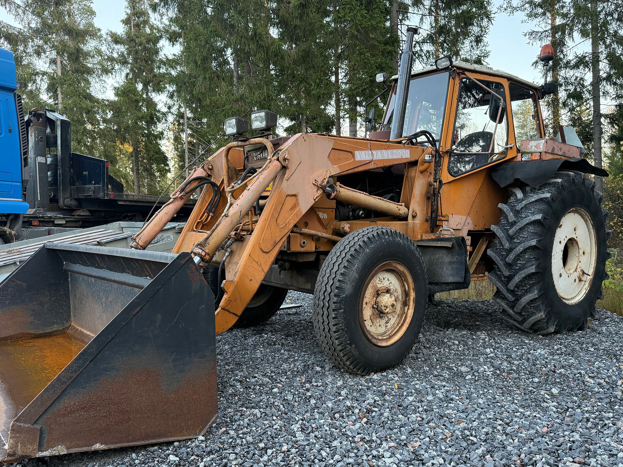 Tästä menneitä vuosikymmeniä henkivä takapotku Valmet Ålön etukuormaajalla seuraavalle ohjastajalle.