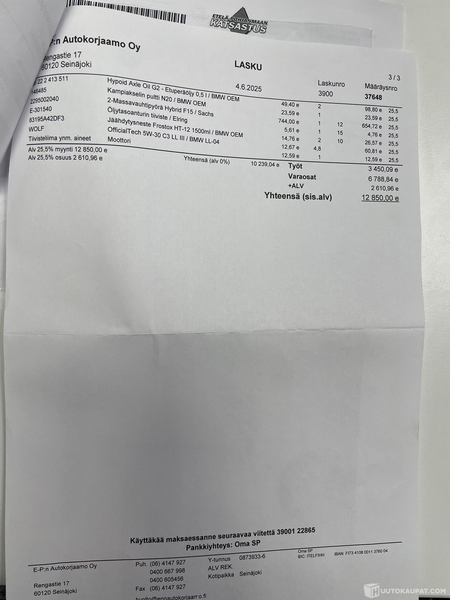 Tämän kohteen myyjä on Huutokaupat.com. Käyttöauto Oy antaa Huutokaupat.comin puolesta kohteesta lisätietoja ja vastaa kohteen luovutuksesta. Kohde tulee aina maksaa Huutokaupat.com-sivustolla olevien verkkomaksupainikkeiden kautta tai Huutokaupat.comin laskulla. Jos kohdetta ei makseta Huutokaupat.comille, Huutokaupat.com ei hyväksy mitään vastuuta kaupasta.