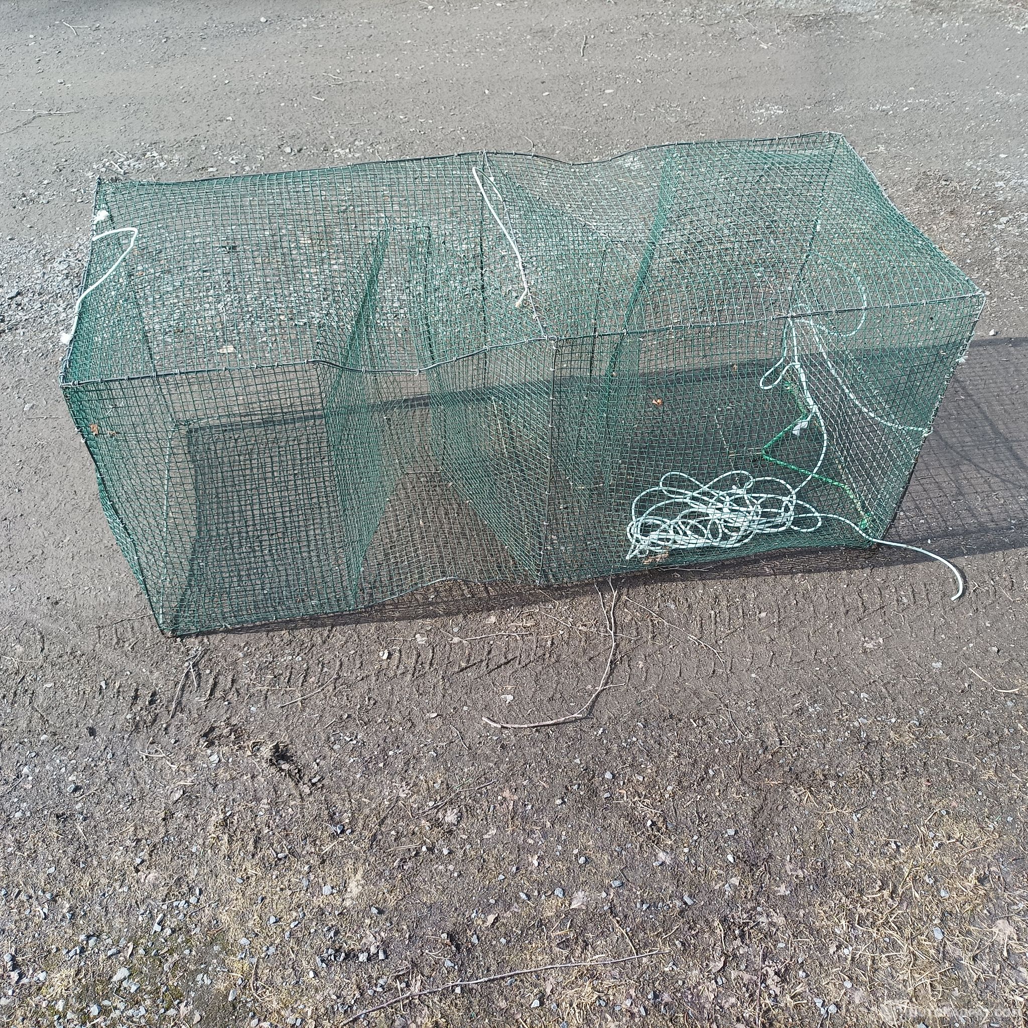 Kaksinieluisia, ammattikalastajan käyttämiä katiskoita 10 kpl. Nielut molemmilla sivuilla. Leveys 120 cm, korkeus ja syvyys 50 cm. Silmäkoko 12 mm. Mukana pitkä naru. Katiskat täysin ehjiä ja siistikuntoisia. Soveltuvat hyvin myös talvikalastukseen.