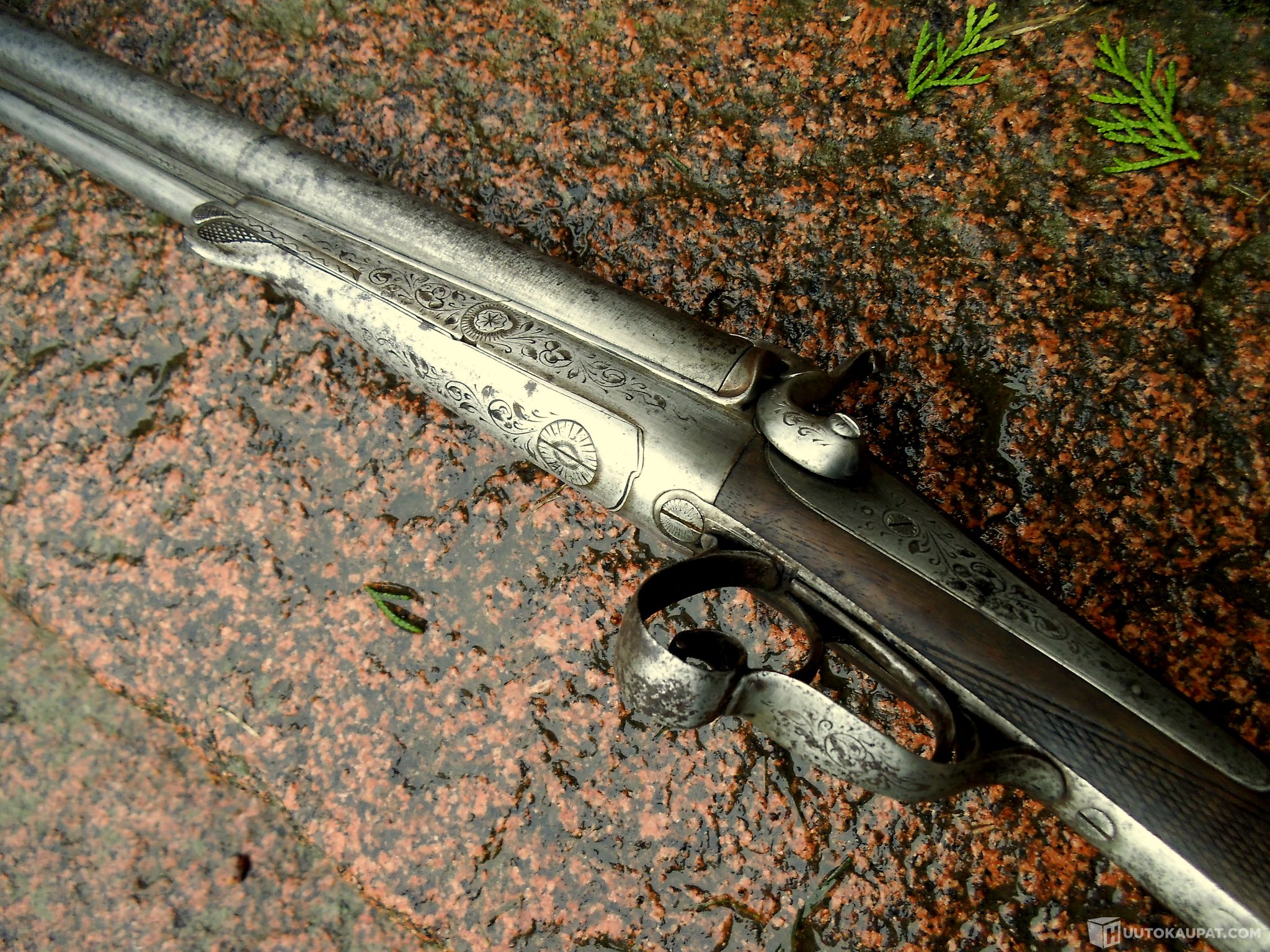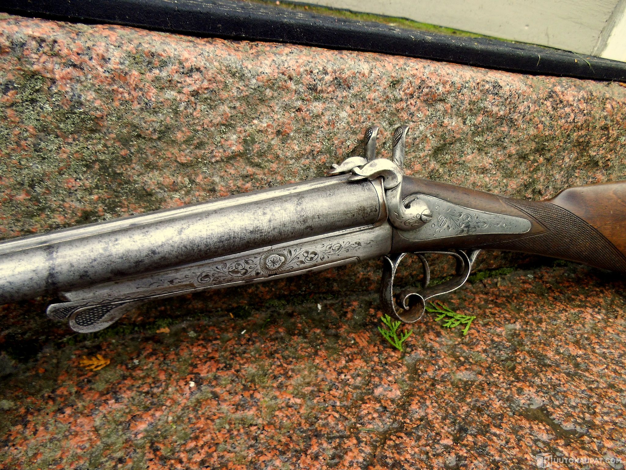 Upea 2-piippuinen patruuna haulikko taittuva ase 1800-luku !!!!, Vehmaa