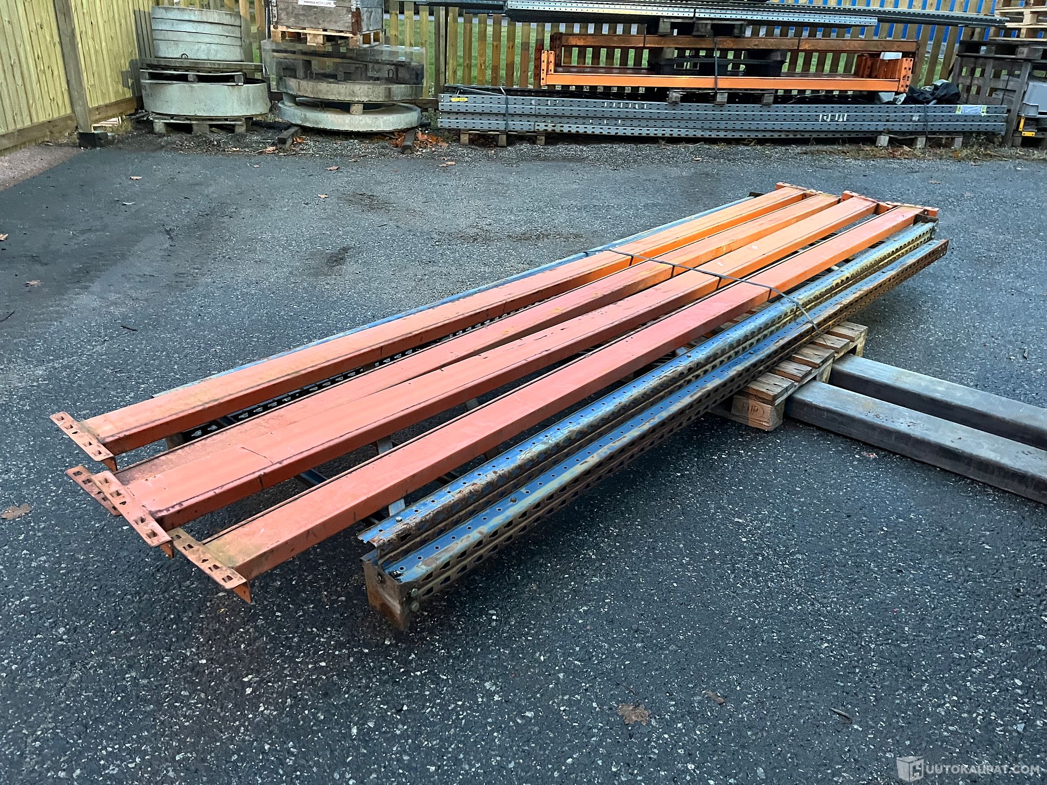 Kuormalavahylly - Trukkihylly Mecalux, Korkeus 3,5m. Harvinaisilla 3950mm pitkillä vaakaorsilla. Tilat jopa 24:lle EUR -tai FIN lavalle. Pituus reilu 4metriä, Lieto