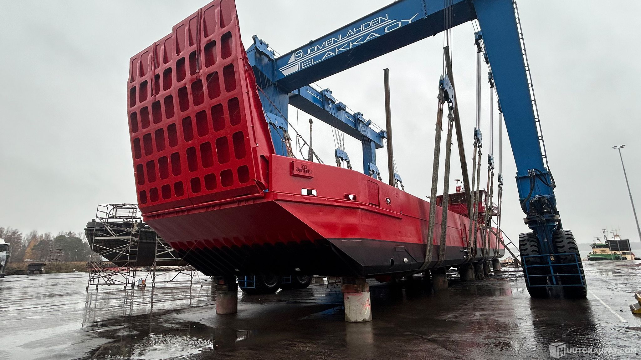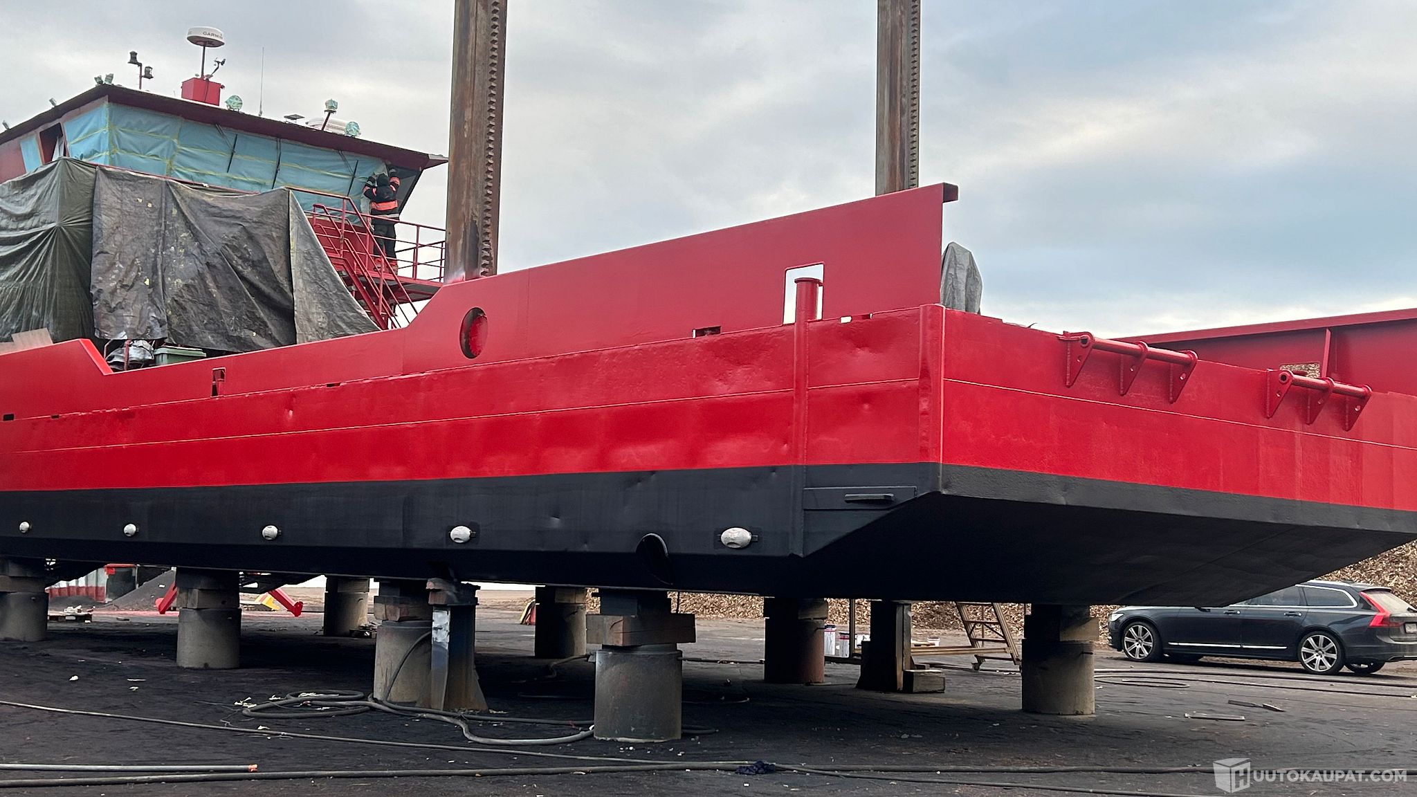 Mahdollisuus ostaa lisähintaan 150000€, 2024 rakennettu keulalohko, 16m X 7m noin 100m3 massaruumalla ja jaloilla sekä hydraulisilla rampeilla. Kolme viimeistä kuvaa on keulalohkosta joka ei siis sisälly huutohintaan.