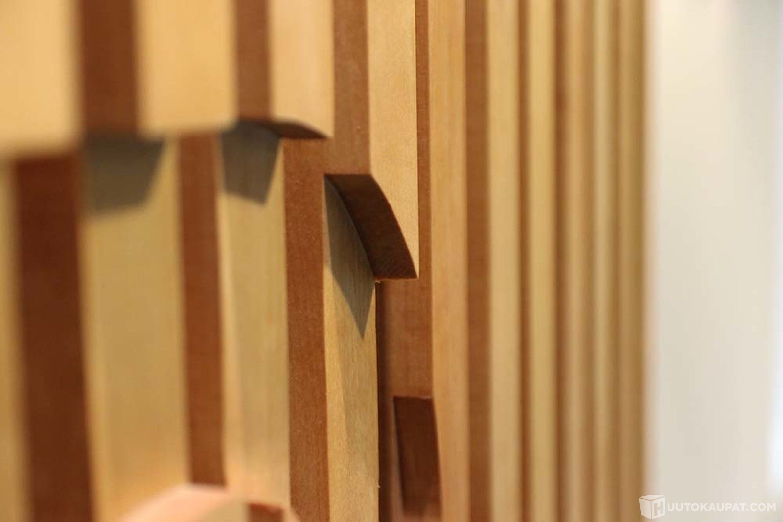 Teos on tehty useista puulankuista. Teokseen on tällä hetkellä jyrsittynä firman logo. Logon poisto vaatii hiukan puusepän taitoja ja työkaluja. Ei ammattilaiselle ole kuitenkaan mikään iso juttu. Aihiosta saa näyttävän seinäteoksen tai uuden brändialusta firman logolle.