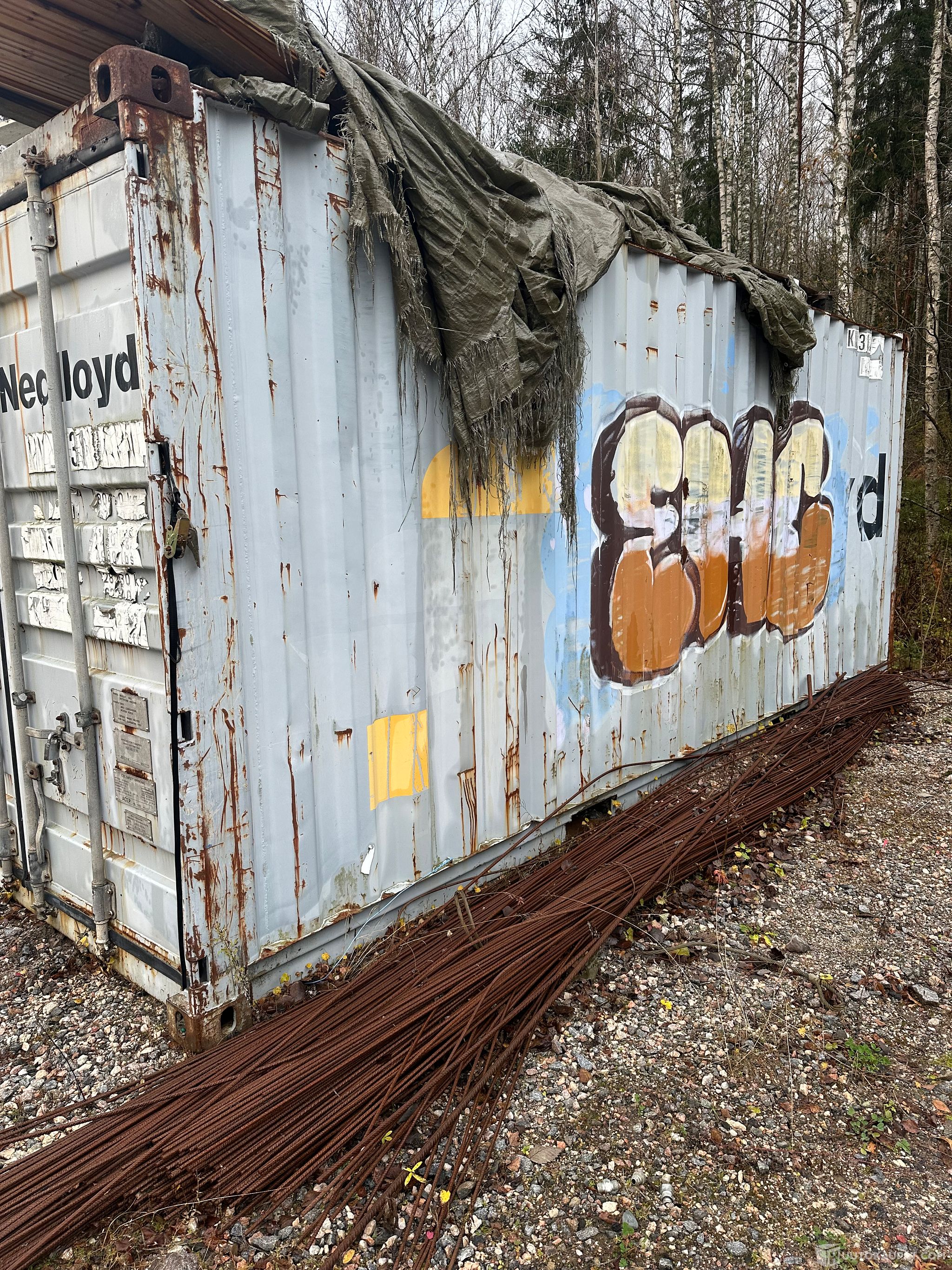 20 jalkanen kontti sisällä olevineen tavaroineen