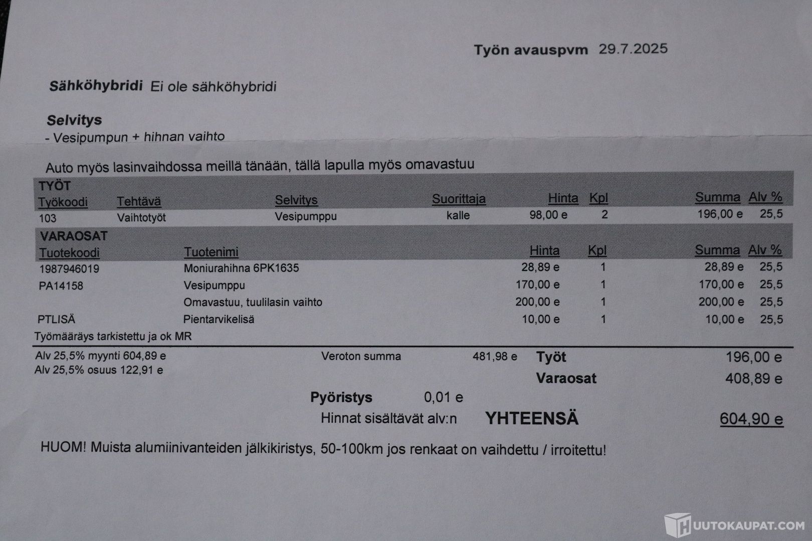 Viimeisin huolto tehty: 10/2025
