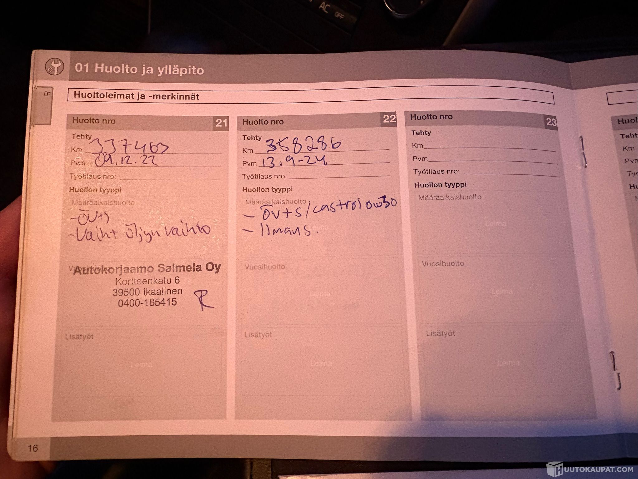 Autosta löytyy huoltokirja mistä kuvat kuvissa.