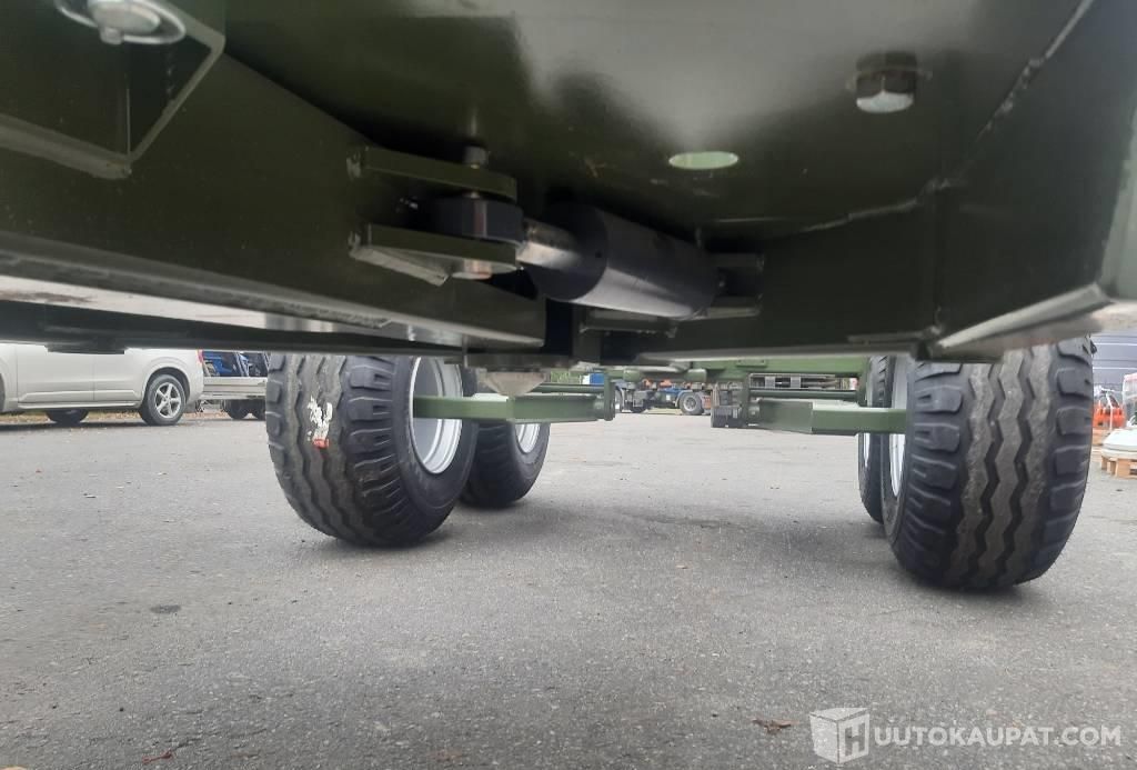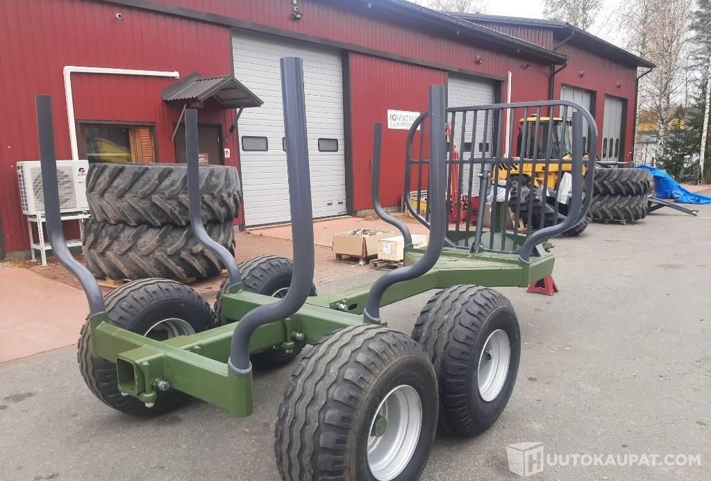 Uusi metsäperävaunu. Varastossa. Hydr aisaohjaus, 3 pankkoa, etusermi.