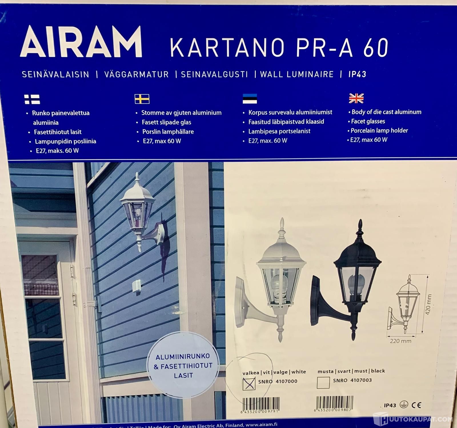 9kpl Airam Kartano ulkoseinävalaisimet Valkoinen, Kauhajoki