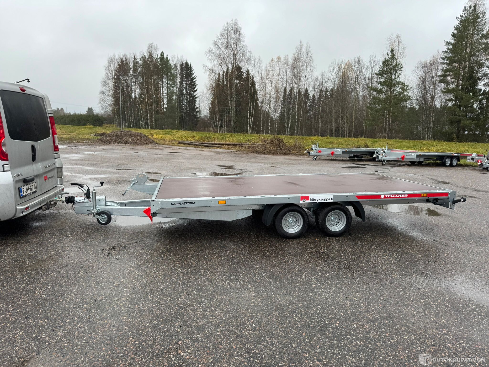 Temaredin Carplatform 4021/2 2,7t on suunniteltu erityisesti ajoneuvojen kuljettamiseen, mutta sen monipuolinen rakenne tekee siitä erinomaisen valinnan myös rakennus- ja maatalouskoneiden siirtämiseen. Helppo lastata ja purkaa. Helppokäyttöisiä jousikuormitteisia sidontalenkkejä runsaasti. Suosittu kärry!